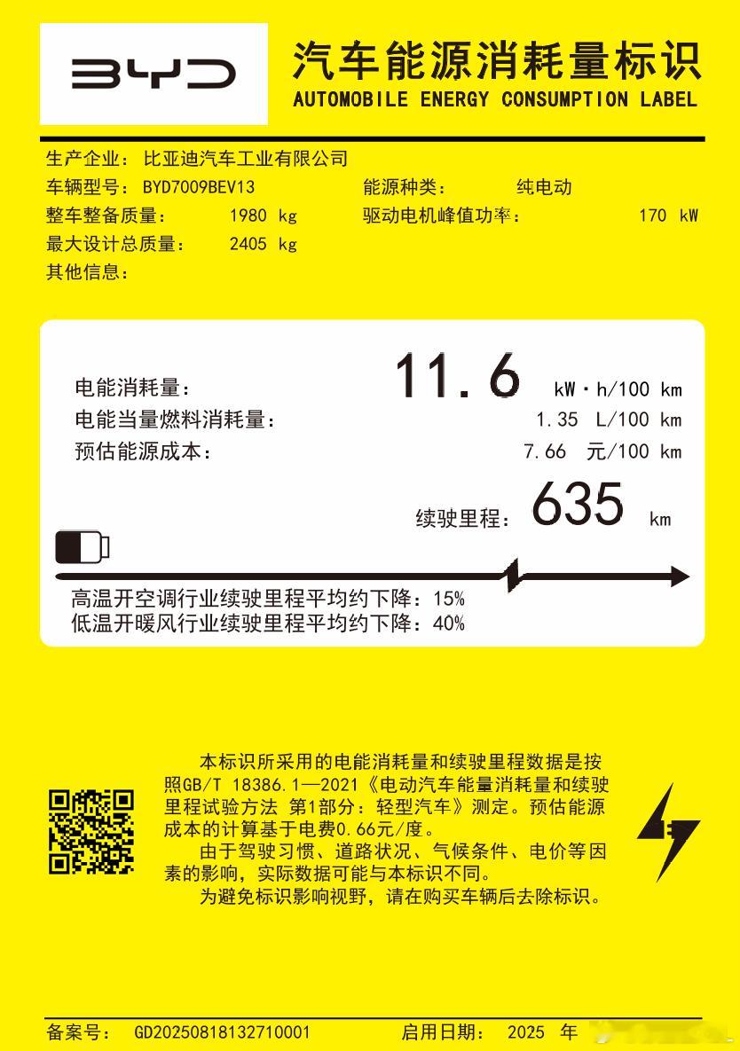新款汉EV的电耗很好啊。从原先的中下游水平,一跃成为了中上游水平。汉EV工信部1