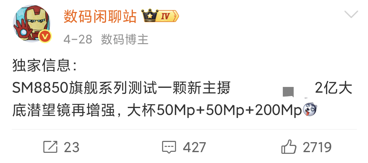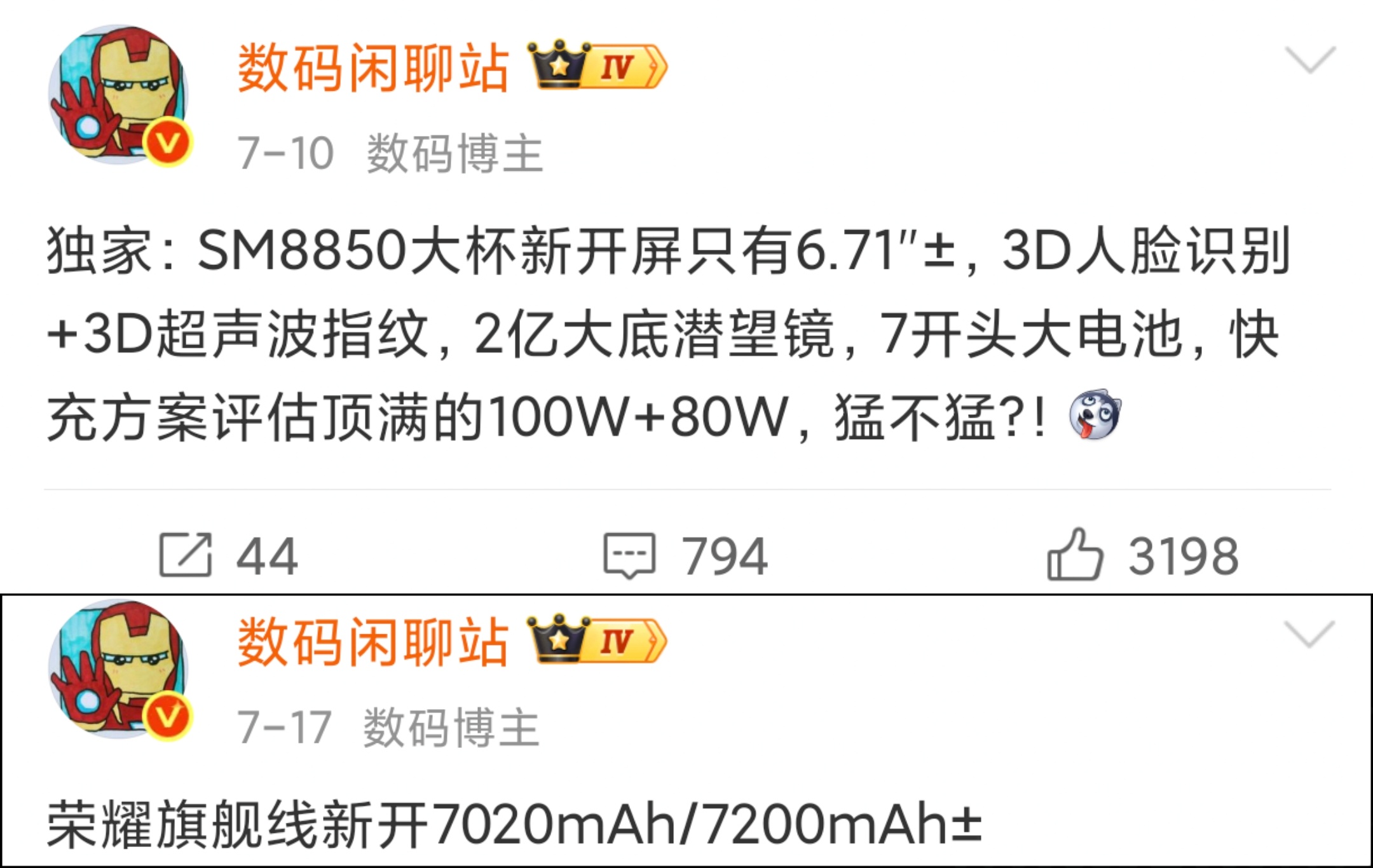 荣耀Magic8 Pro,目前已知信息是6.71"1.5K等深四曲屏,3D人脸识别+3D超声波指纹,电池7200mAh,有线快充顶到120W,影像系统是50Mp+50Mp+200Mp,超大底主摄23mm F1.6光圈,2亿大底潜望镜是85mm F2.6光圈[二哈]