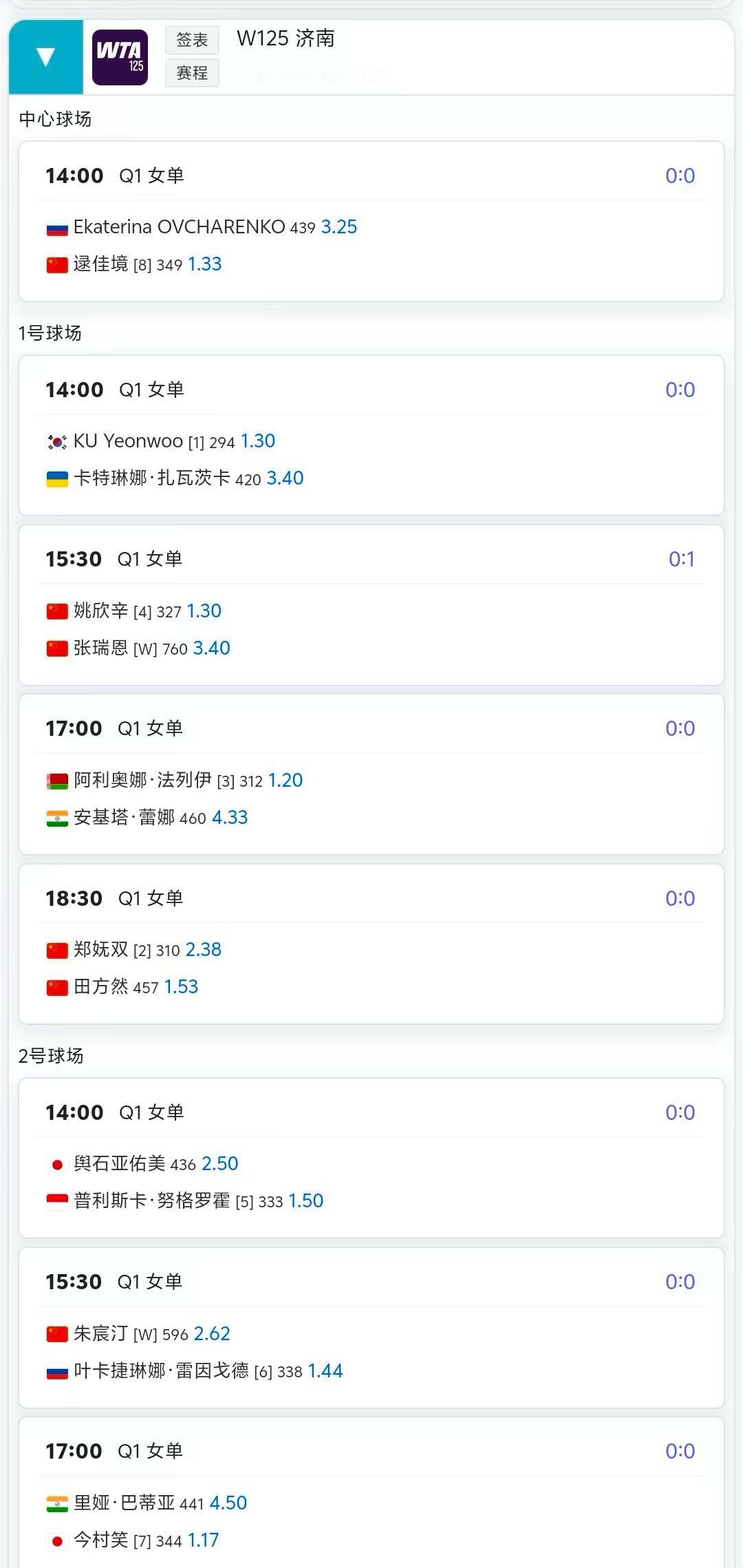 网球talking大会2025济南国际网球公开赛济南125赛今日赛程安排。