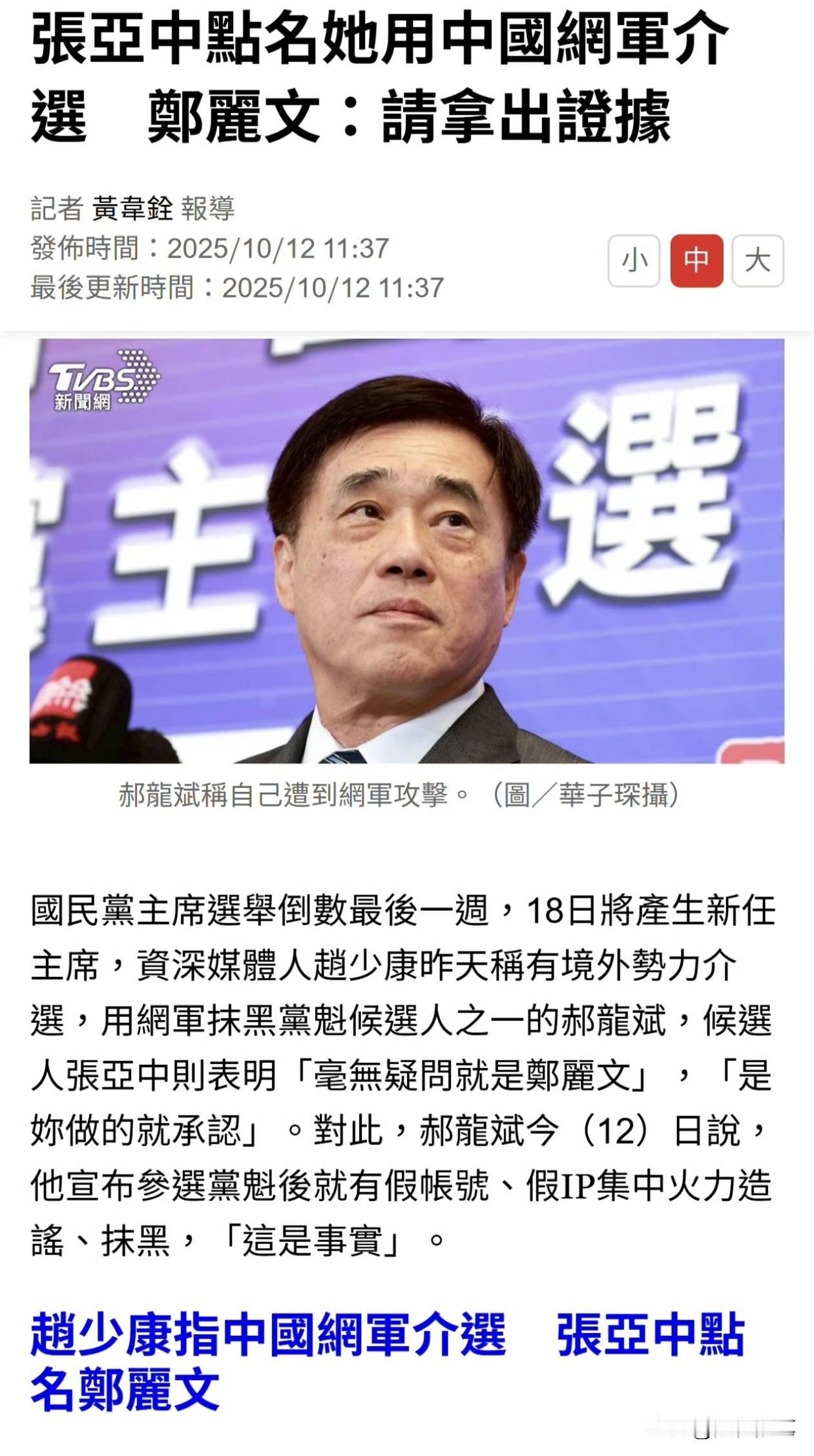 竞选进入倒数阶段,郑丽文成为重点被针对的目标。 近日针对所谓“网军”干扰国民党选举,不仅赵少康甩锅大陆介入,郝龙斌和张亚中也把矛头对准郑丽文,都认为是郑丽文利用大陆网军带风向。毫无疑问,看到郑丽文的网络民调高居第一,都急了。 但是,如果说是岛内网军在带风向还说得过去,没想到居然认为是大陆的网军在支持郑丽文,这就很荒唐了。 虽然说郑丽文相在大陆这边的名声不算坏,但是也好不到哪里去,特别是经过11日中天举办的专门针对两岸关系的辩论,郑丽文的言论也一样没有什么突破性,在大陆这边肯定不会买单的,更加谈不上支持她。 从大陆网友的角度,这次国民党主席竞选,更多的是看戏罢了,谁上来真的没那么重要,污蔑大陆网友介入真的很不道德。