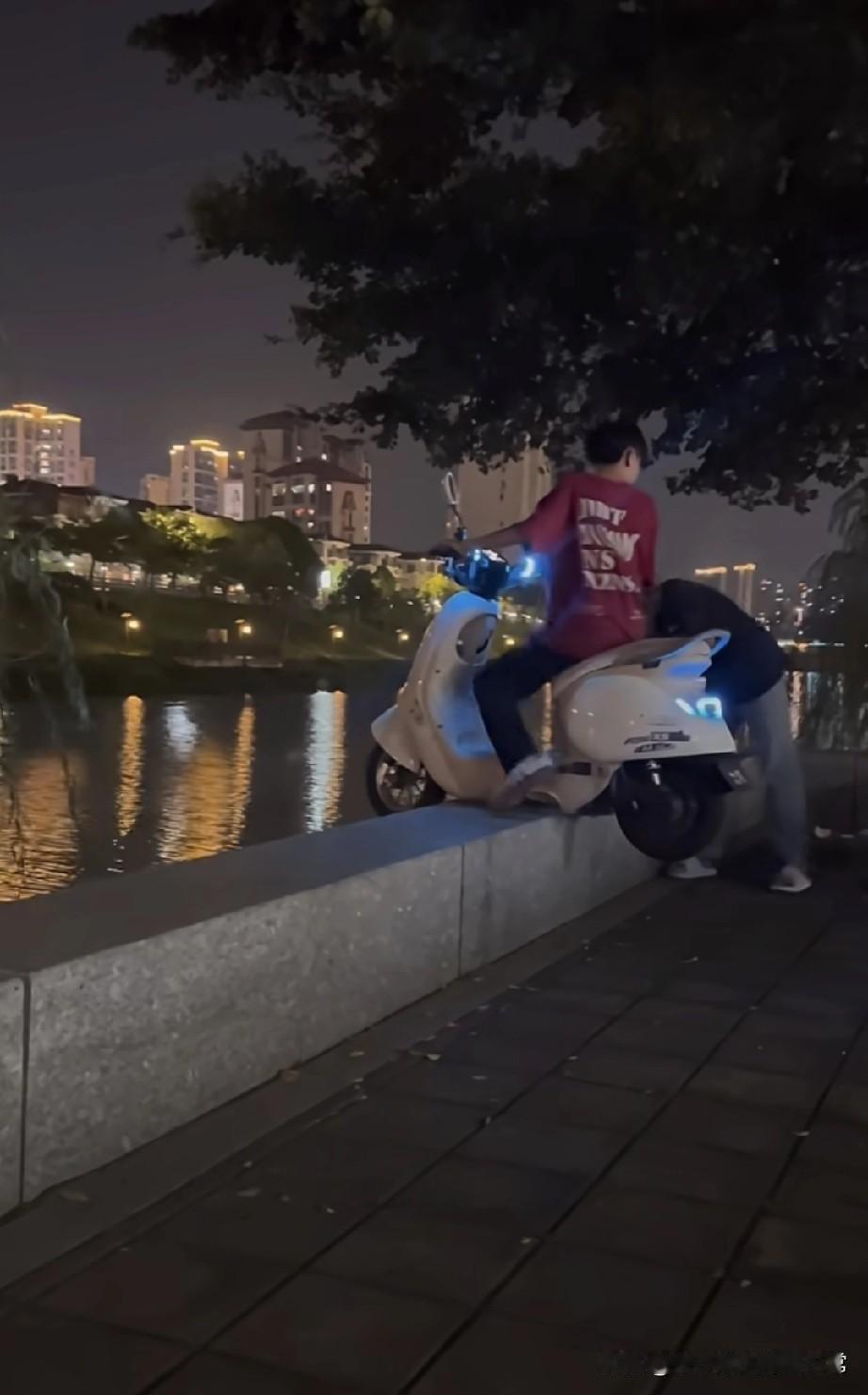 江边精神小伙把电动车是耍酷还是玩命 夜跑时撞见这幕我惊出冷汗!一精神小伙把电