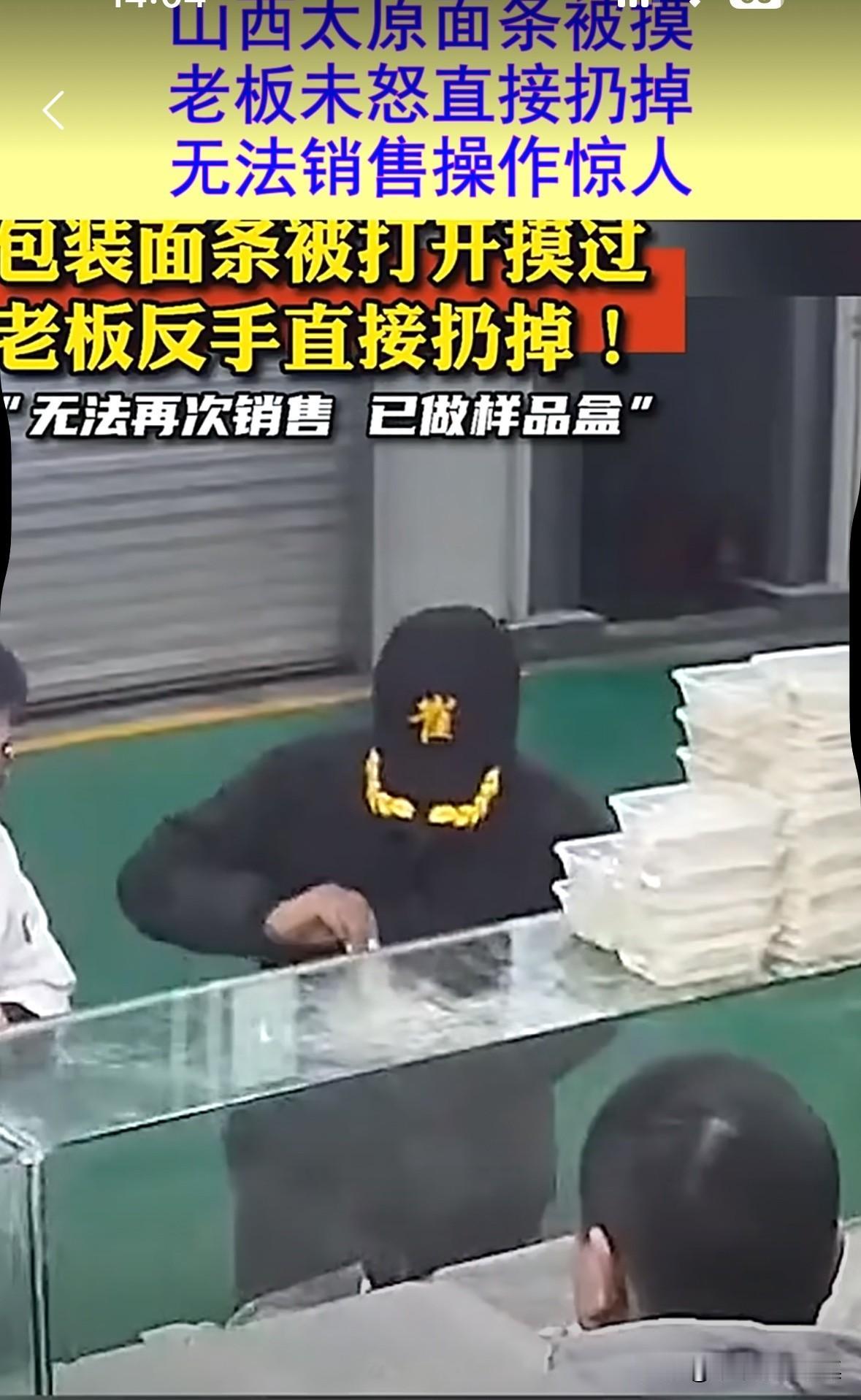 山西太原,一男子去买面条,包装好的面条非得打开看一下,老板多次提示:“不能打开不能摸!” 男子还是打开摸了一下,又盖好放到了原位。 老板生气的说:“你摸了不买是什么意思,摸过了已经没有办法卖了。” 随后老板直接把摸过的面条扔掉,做成样品。 我支持老板的做法,这男的手不知道干不干净,就下手摸,太没有素质。
