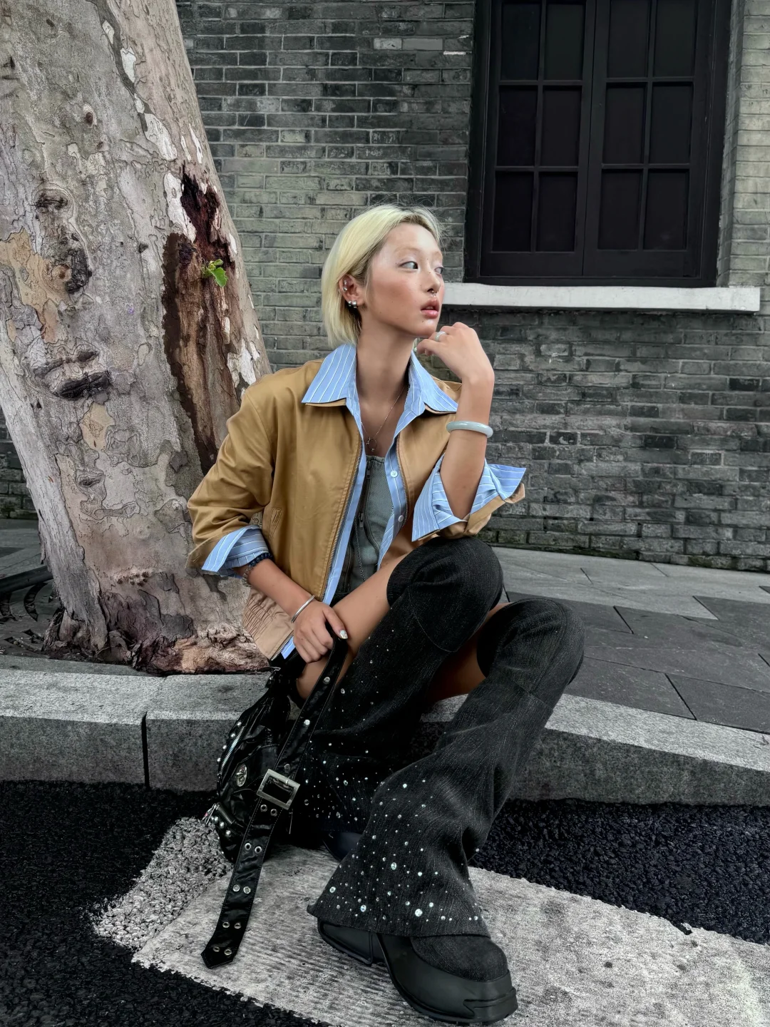 1988年,27岁的陈冲在上海街头,好喜欢这种年代感,穿的衣服现在也不过时