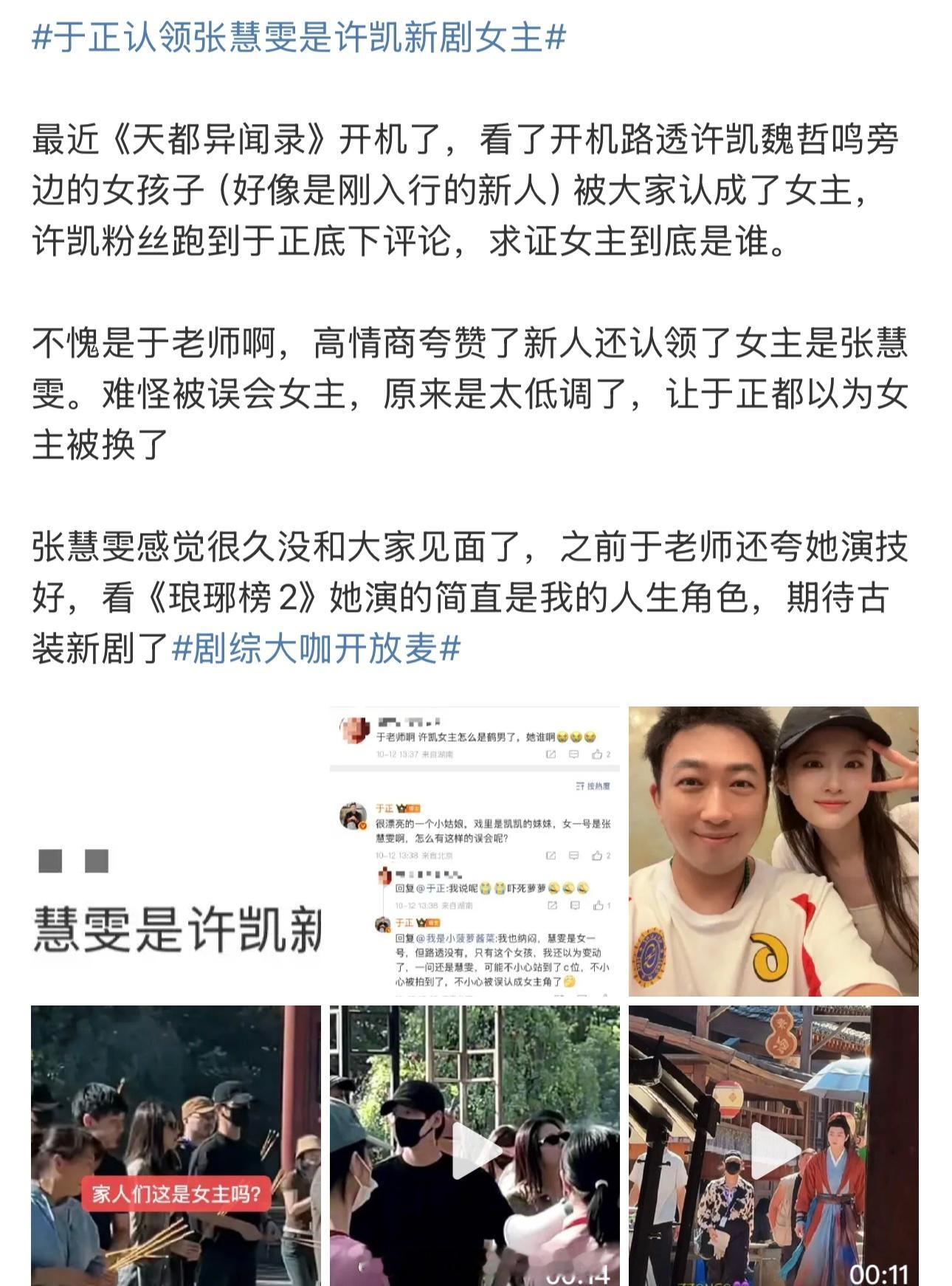 于正认领张慧雯是许凯新剧女主