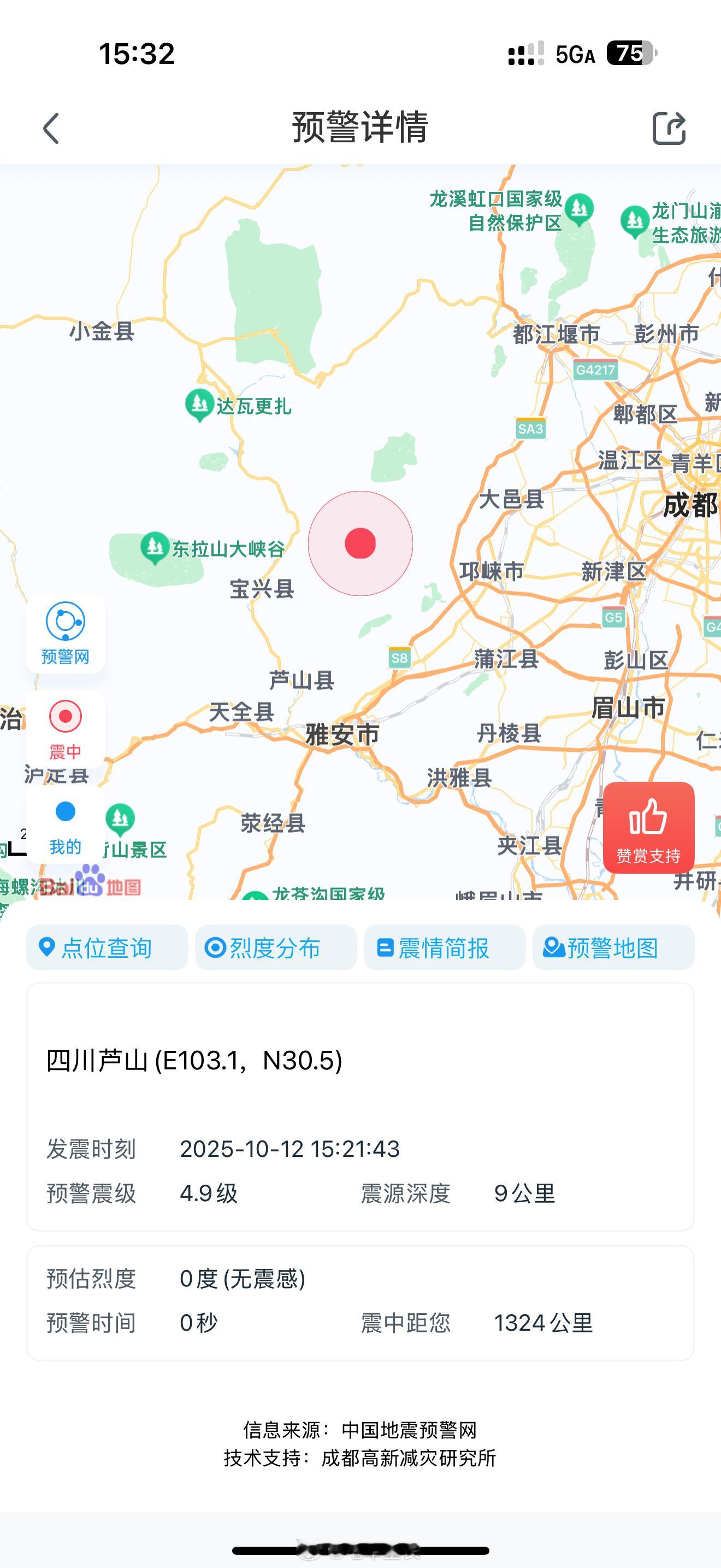 四川阿坝州地震庐山刚刚4.9级了,比3.1级的阿坝州地震强烈得多