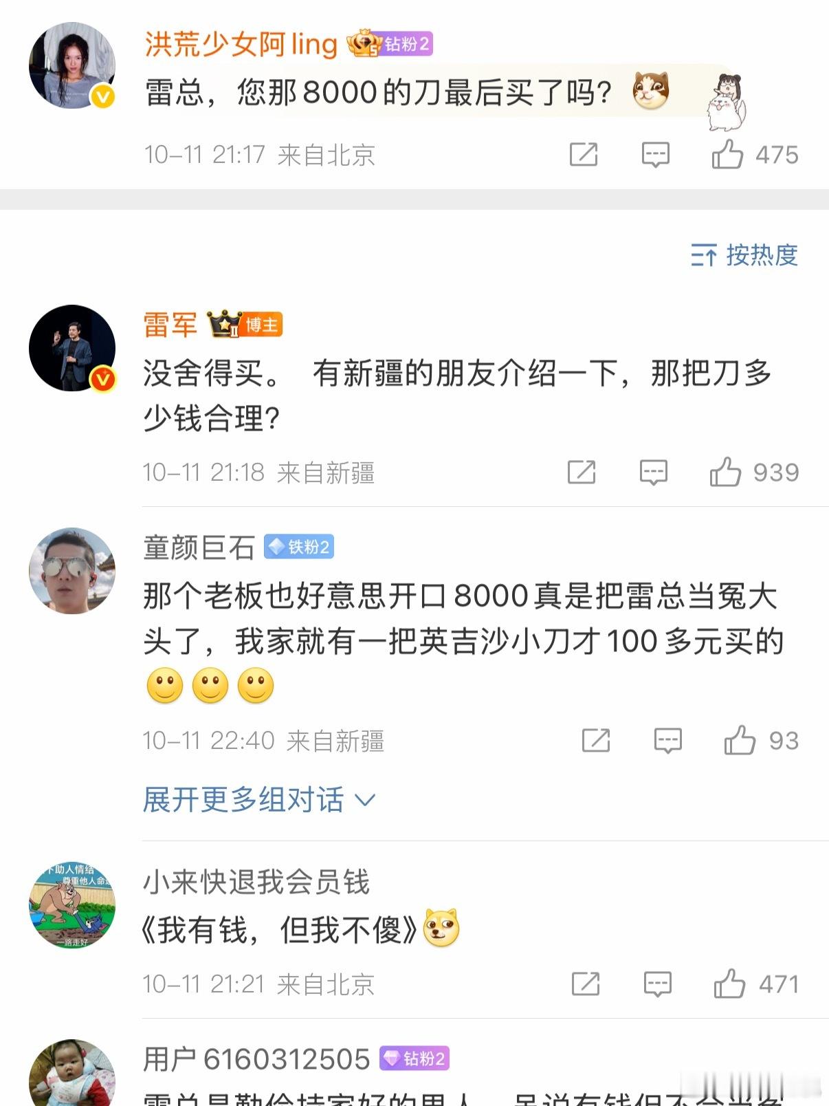 雷军被8000元小刀价格惊呆了看雷总的表情明显是被吓到了,嘴巴张那么大