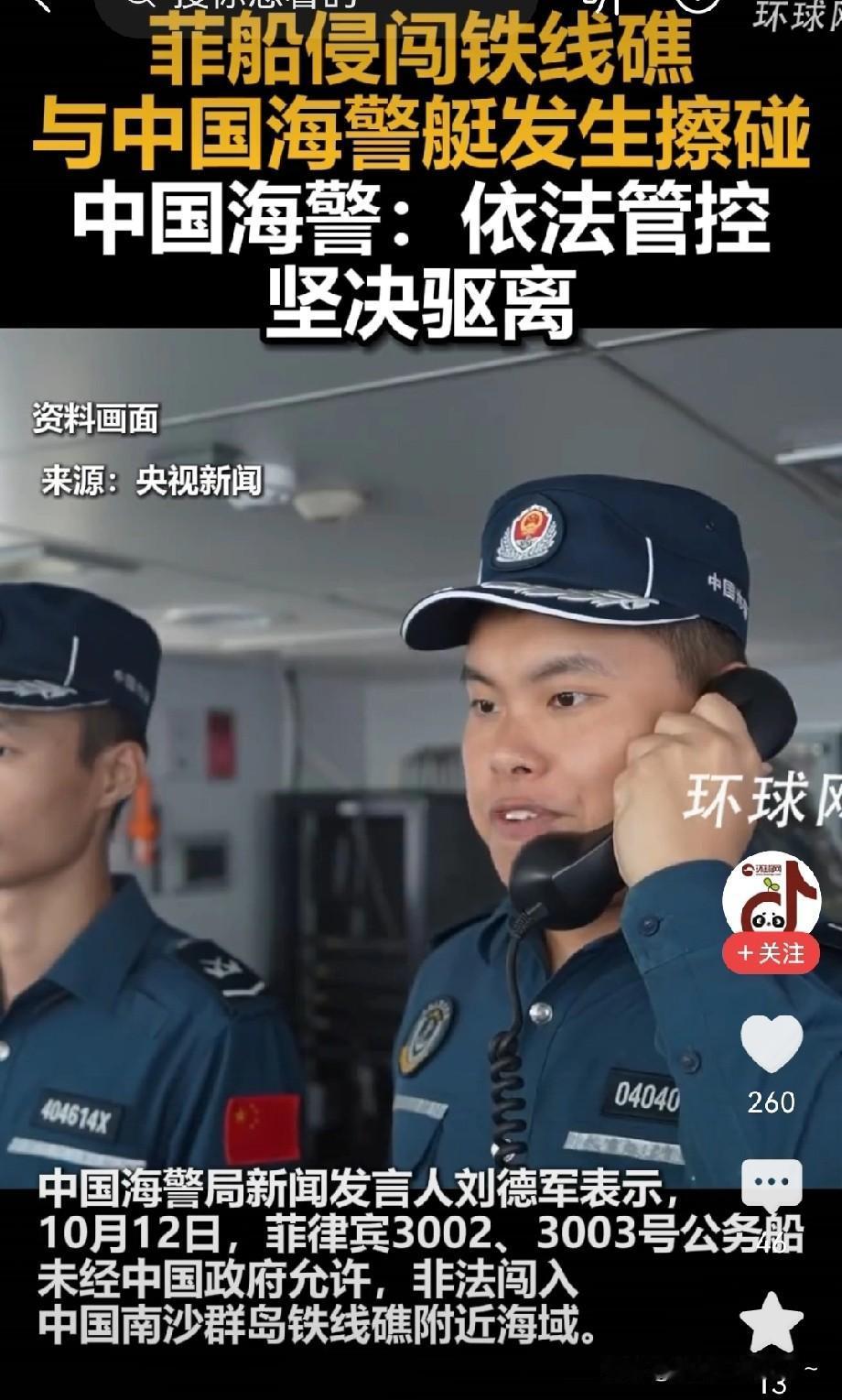 看了一下,菲律宾那边就是一艘小破船,在中国海警船面前就是小巫见大巫,吓得灰溜溜的跑,这还是拿了一个摄像机取证喊话的时候,这次是连高压水炮都没用上。 如果,加速从这个小破船身边行驶过去,估计涌起的浪都把那艘小破船掀翻。 再看看咱的指挥员,指挥起来,淡定自若。