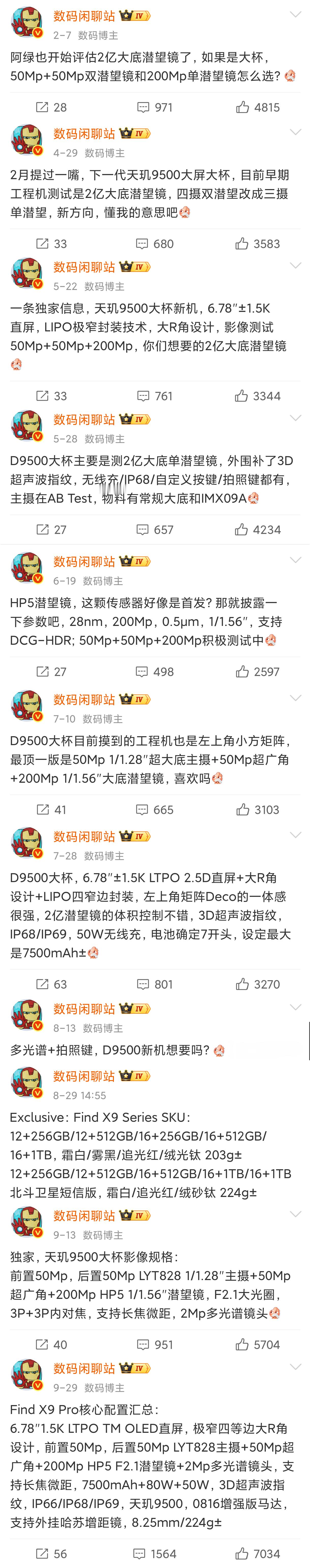 OPPO Find X9核心参数汇总,猜猜定价吧: