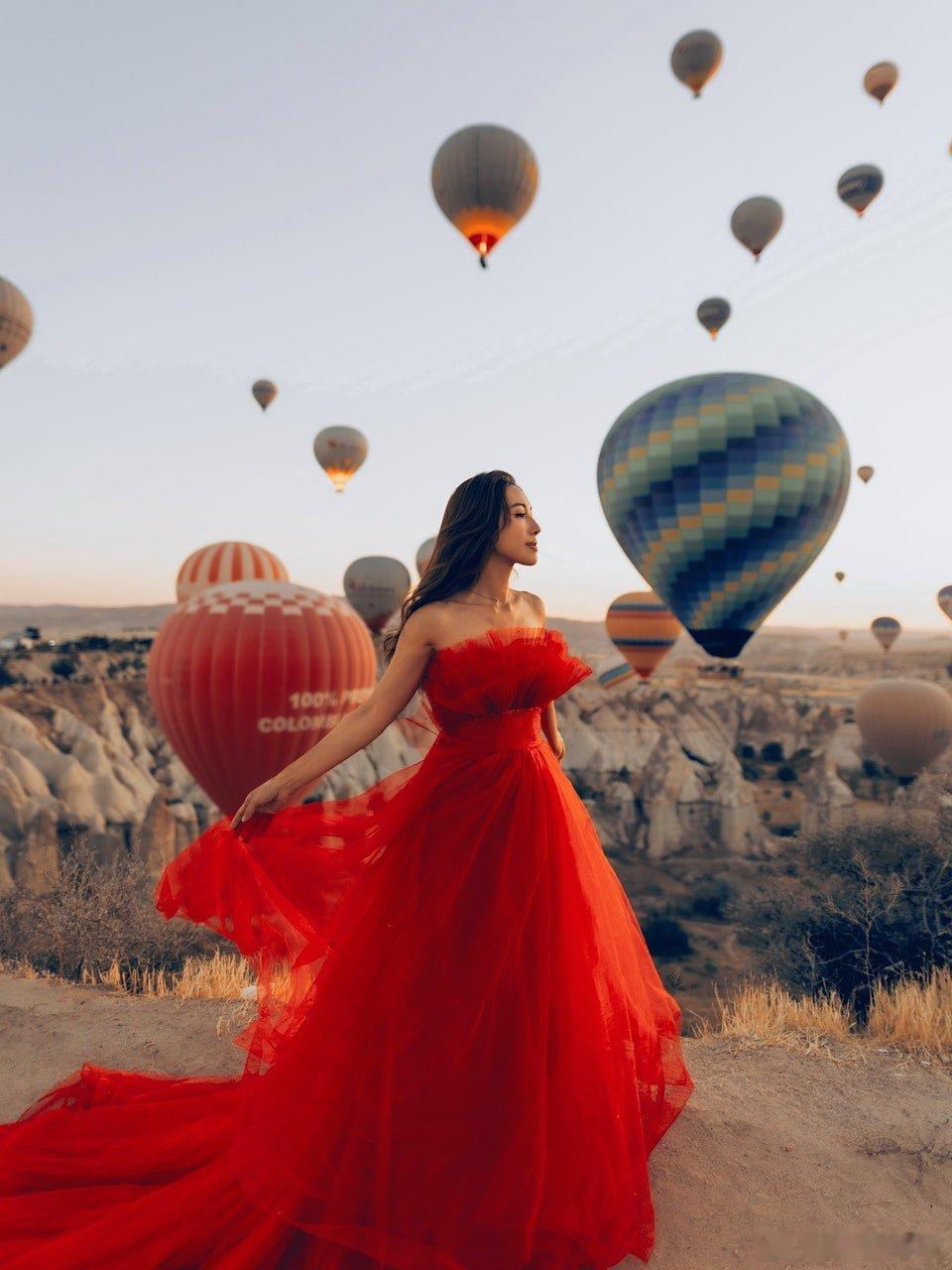 李施嬅昨日在IG分享了數張穿上一襲鮮紅色露肩婚紗的唯美照,在卡帕多奇亞奇特的岩石與滿天熱氣球的夢幻美景下留倩影,並留言寫道:「好多人都在土耳其怕婚紗照,紀錄愛的一刻。完全明白,因為真的很美,很夢幻。 其實自己拍下自己享受美好的時光,也是記下愛自己的一刻,也是一種幸福😊 最後一組照片了,很不捨得這個地方。有緣再見👋🏻」。