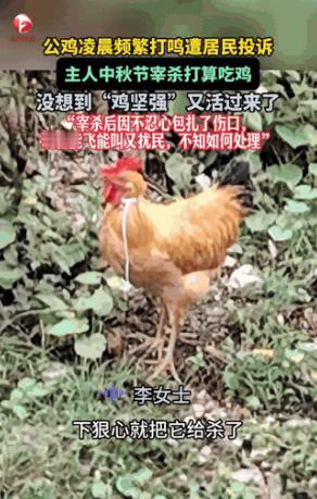 “不可思议”。10月7日贵州,一只大公鸡频繁夜里乱打鸣,遭邻居多次投诉,无奈主人只好计划给它炖了,结果水刚烧开,那只公鸡竟活了。 山里人家养几只鸡很常见,大多是天亮了才打鸣,算是天然的闹钟。可李姐家这只偏不,像是把生物钟调反了,专挑半夜里扯着嗓子叫。 有时候是十二点刚过,万籁俱寂的时候,它“喔喔喔”的声音突然响起来,尖得能穿透窗户;有时候凌晨两三点,大家睡得正香,它又准时开嗓,那声音在山里回荡,特别清楚。 最先受不住的是有孩子的邻居,孩子第二天要上学,被鸡叫吵醒后就很难再睡着,白天上课总打盹,成绩都受影响;还有张大爷,年纪大了睡眠浅,每次被吵醒就睁眼到天亮,精神越来越差。 一开始大家还不好意思说,后来实在忍不了,就陆续找李姐念叨。你一句“夜里实在没法睡”,我一句“孩子上学受影响”,抱怨的话听多了,李姐心里也不是滋味,觉得挺对不住街坊邻居的。 其实李姐对这只鸡挺有感情,是她从鸡蛋开始,一点点孵出来、喂大的,看着它从毛茸茸的小鸡仔长成威风的大公鸡。 可邻里关系也不能不顾,思来想去,李姐咬咬牙,决定把这只“惹祸”的公鸡杀了,炖锅鸡汤,也算是给大家一个交代。 那天一早,李姐狠下心把鸡杀了,放了血,就去厨房烧热水,准备处理干净。 水在锅里“咕嘟咕嘟”冒着热气,眼看就要开了,她转身去院子里拿鸡,却看见不可思议的一幕——那只本该没了气息的公鸡,竟然扑腾着翅膀从地上站了起来,脖子上还带着血印,摇摇晃晃地躲到了院子角落的柴火堆里。 李姐当时都懵了,站在原地愣了好一会儿。看着公鸡那副虚弱却还想活着的样子,她心里的那点狠劲一下子就没了。 她赶紧跑回屋,翻出云南白药和纱布,小心翼翼地给公鸡包扎伤口,心里琢磨着:这鸡能从鬼门关走一遭,也是缘分,先养着看看吧,说不定它能改了打鸣的毛病。 没想到这鸡命还挺硬,没过几天就又活蹦乱跳了,脖子上的疤反倒成了它的“标志”。可让人头疼的是,它半夜打鸣的毛病一点没改,邻居们的抱怨声又起来了。 李姐没办法,就把这事儿随手拍了视频发到网上,想问问大家有没有办法,没成想一下子就火了。 网上的说法五花八门,有人说这鸡有灵性,是“神鸡”,不能杀;有人出主意,让李姐给鸡找个伴儿,说不定就不半夜叫了;还有人说干脆把鸡的嘴绑上,或者割了声带,简单直接。 但更多人还是觉得,不管鸡多特别,也不能影响别人休息,建议李姐把鸡送到乡下亲戚家养,既不耽误鸡活,也不打扰邻居。 李姐也犯了难,一边是自己舍不得的鸡,一边是邻居的安宁。最后她还是决定把鸡留下,但也没光顾着自己的感情。 她计划在院子最角落、离邻居家最远的地方,给鸡搭个隔音棚,周围再种上爬藤植物,尽量减少噪音。还在院门口挂了个牌子,写着“暂时闭鸣中”,带着点自嘲的意思,邻居们看到牌子,脸色也缓和了不少。 后来她还找了兽医来看,兽医说鸡没毛病,就是天生生物钟和别的鸡不一样,不是什么“灵异事件”。 现在不管是城里还是山里,大家住得近了,难免会有互相影响的时候。每个人都有自己想珍惜的东西,就像李姐珍惜那只鸡,但也得考虑别人的感受,不能因为自己的喜好影响到别人的生活。