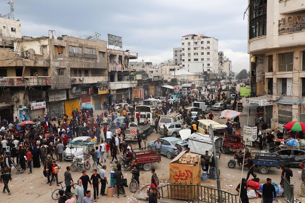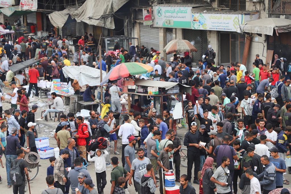 图:加沙城一角 这里呈现出加沙别样的风景,与残垣断壁的废墟不同,这里充满了市场的烟火气,小商小贩的叫卖声此起彼伏,地摊上的各种小物件极具特色,食品摊随处可见……,人们接踵而至、穿行其间,热闹非凡,这一刻给人的印象是,加沙人似乎正在远离战乱。