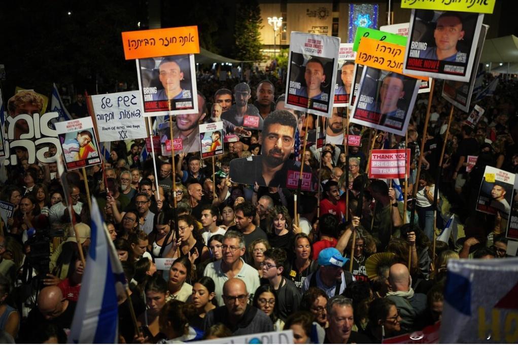 在人质广场上,随处可见感谢美国总统特朗普(Donald Trump)的标语与美国国旗。许多家属认为,以色列总理内塔尼亚胡(Benjamin Netanyahu)要为战争持续和人质问题迟迟未解负主要责任,指责他逃避2023年10月7日袭击事件的政治后果,并阻碍了和平谈判。