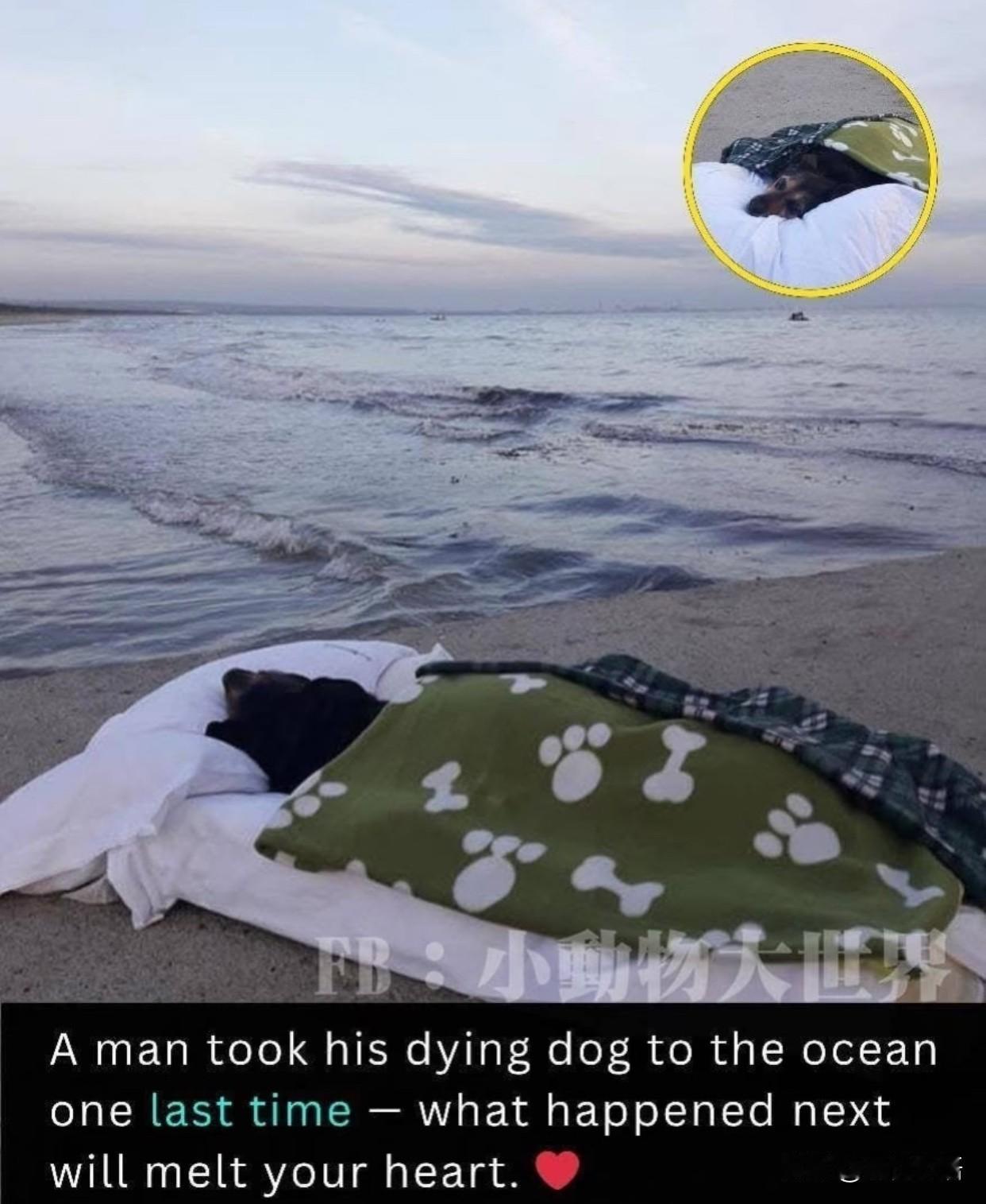 谁看哭了!重病狗狗看海后竟活了两年 刷到个超暖的故事! 意大利有个大叔,带着重病的老狗格里塔去看海。 狗狗当时快不行了,连动都难。 大叔就用毯子枕头,在海边给它铺了张小床。 让它吹海风、闻海味、听浪声,算是最后的告别。 结果奇迹发生了! 格里塔没走,还多活了整整两年! 直接推翻了兽医的判断! 原来爱真的能创造奇迹啊! 对狗狗来说,这哪是告别,分明是带着爱续了命。 看完心里软软的,毛孩子值得所有温柔!