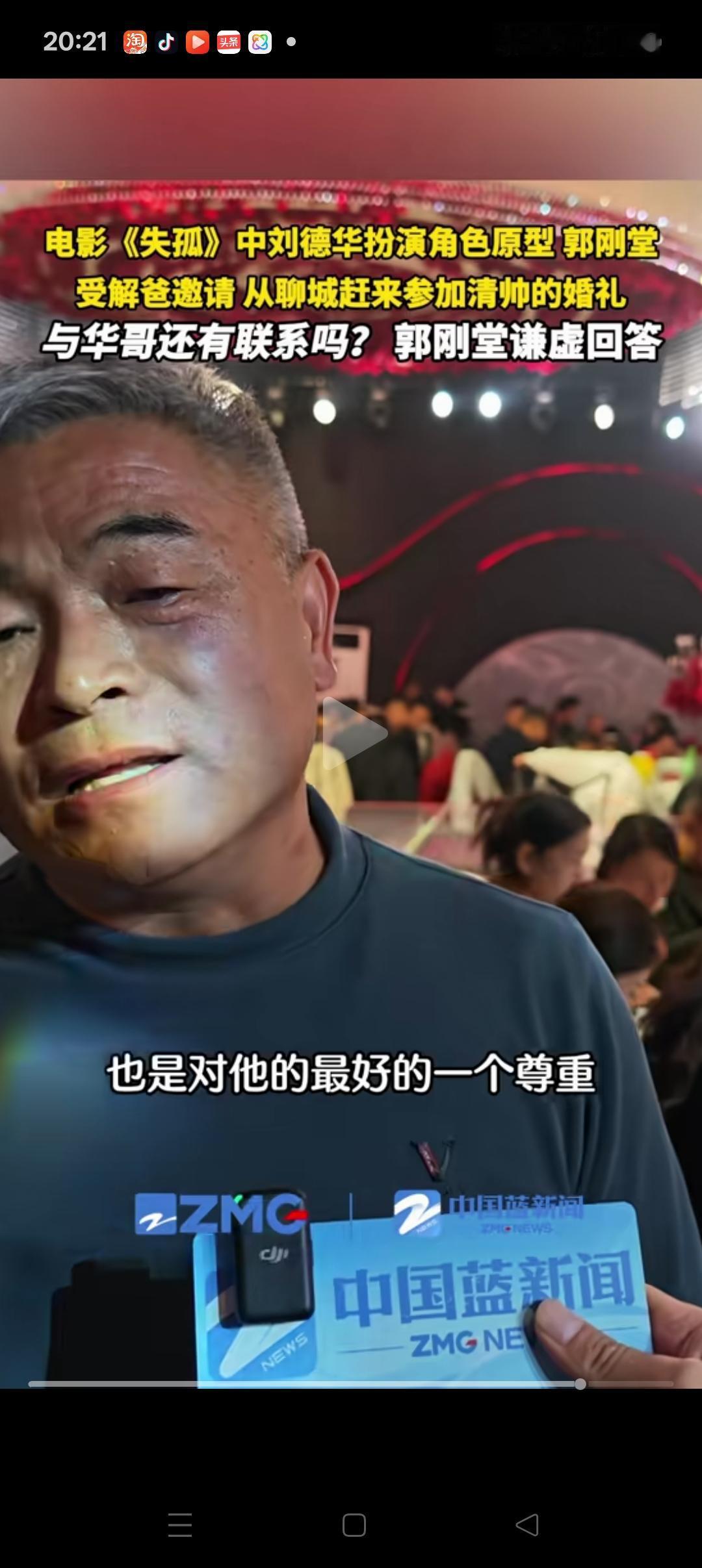 解清帅大婚, 他的养父母没来,我可以理解! 杨妞花,孙海洋来了,我也不惊讶! 但直到看到郭刚堂,面对记者的提问:最近有没有和“华哥”联系时, 他的回答太有智慧,太清醒了! 他笑了笑,说:华哥是天王,我们就是普普通通的人,过好自己的生活,也是对他的一个尊重。 郭刚堂找了儿子24年,历经千辛万苦,虽然最后不能和儿子一起生活。但他知足了,选择放手,让儿子选择,也是个有大智慧的人。 说郭刚堂是寻亲界里的一股清流,一点也不为过,佩服[玫瑰][玫瑰]
