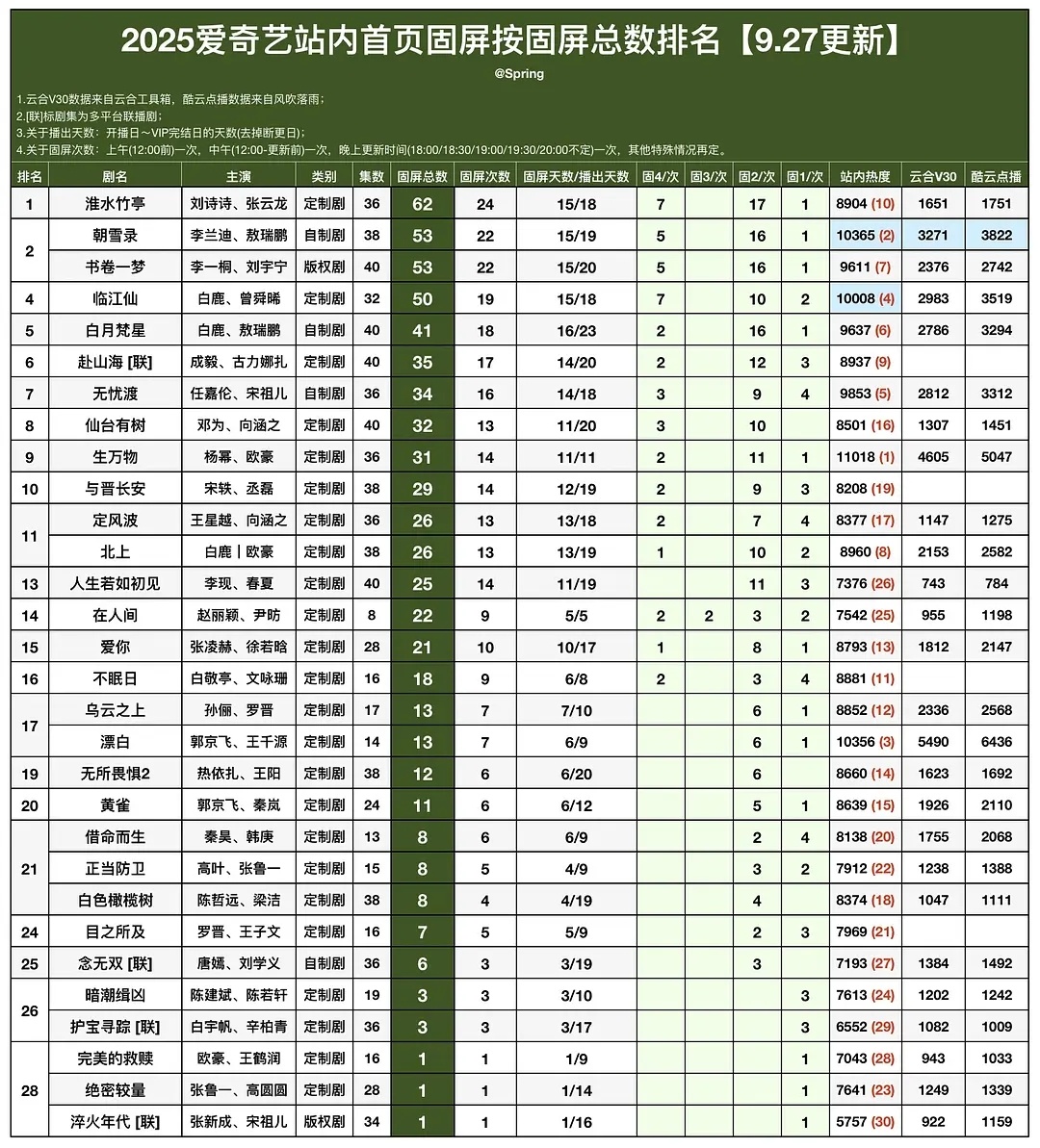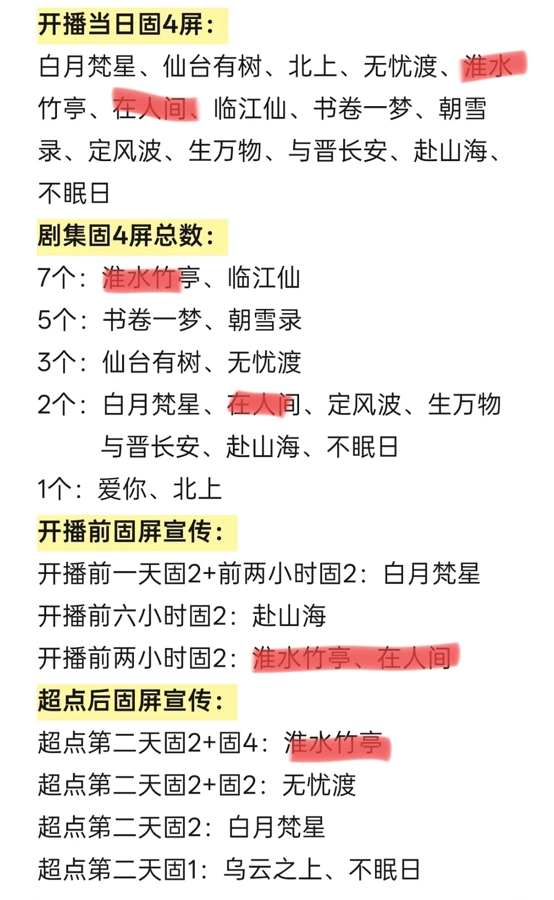 固屏总数包括开播前固屏也不少
