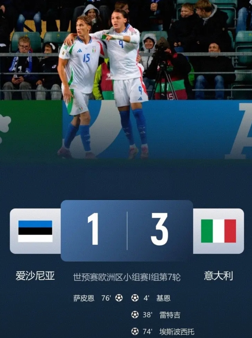 昨晚,意大利3:1胜爱沙尼亚,小组赛已经四连胜。