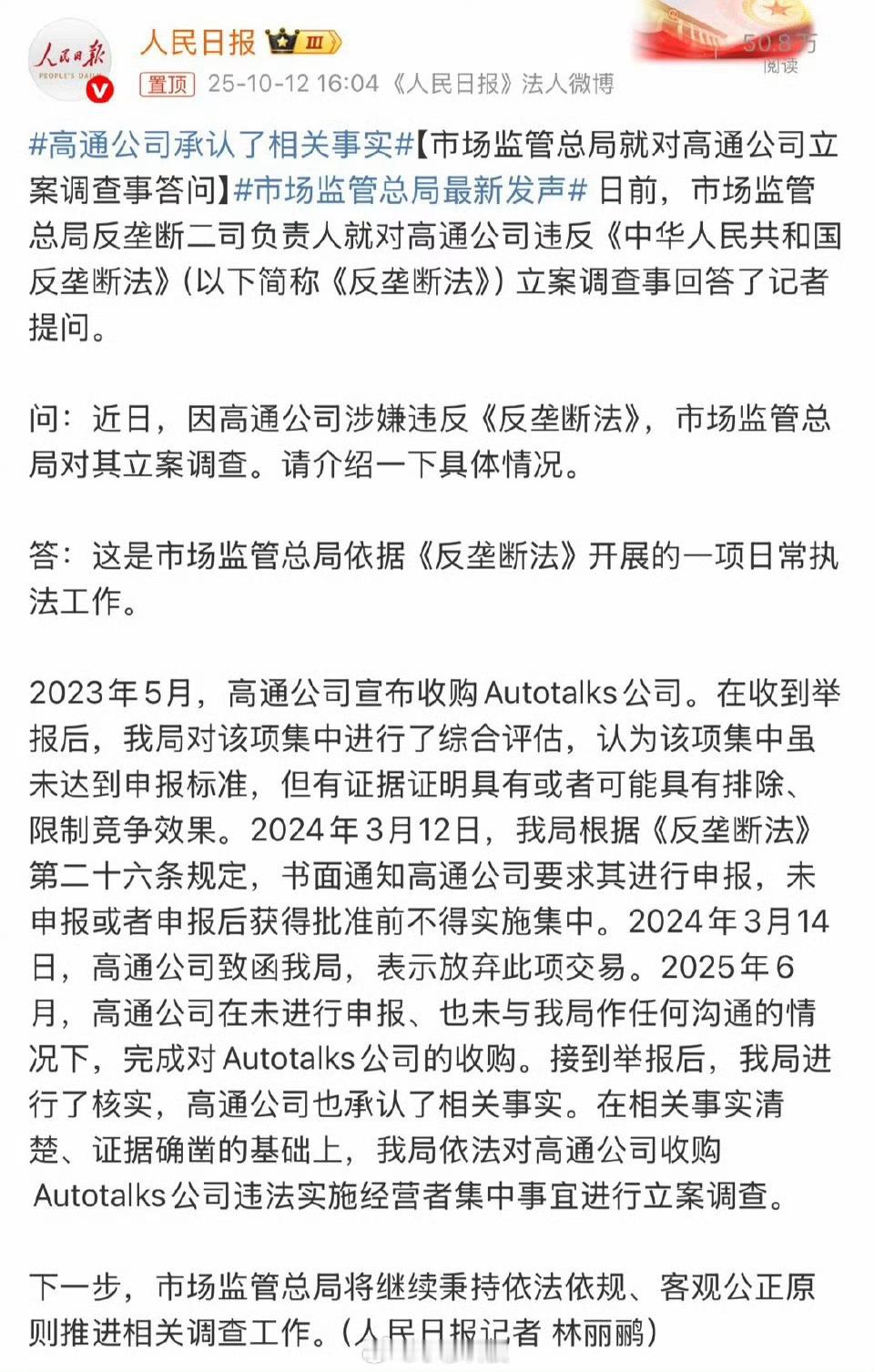 高通公司承认了相关事实高通承认在国内市场涉嫌垄断,后续就看罚款多少了,这次罚几亿