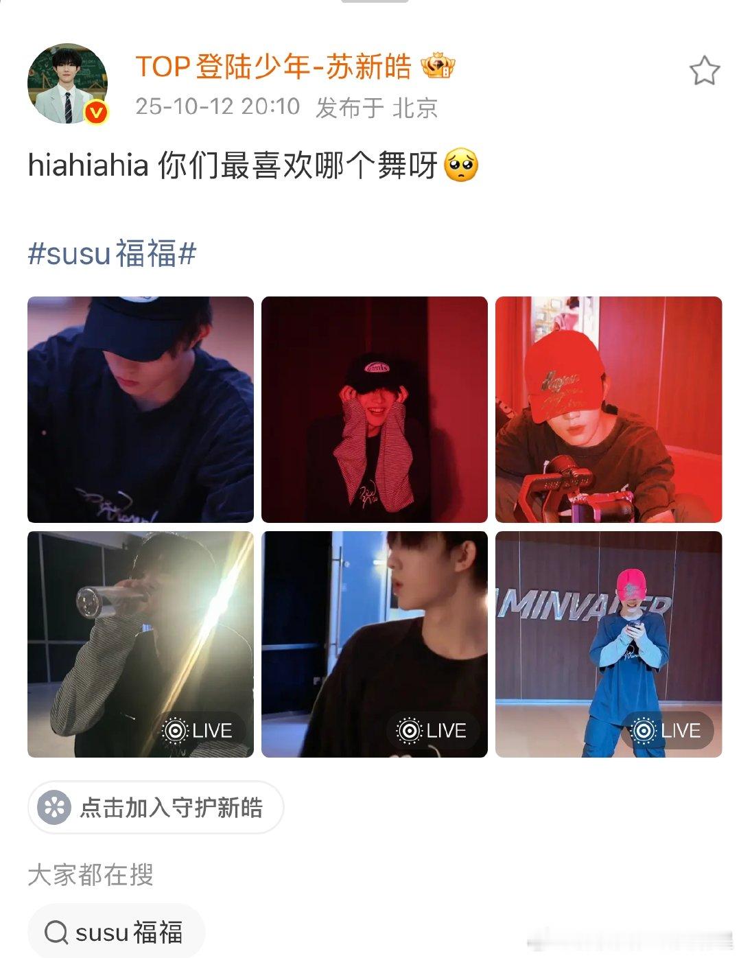 苏新皓问粉丝最喜欢哪个舞苏新皓问你们最喜欢哪个舞苏新皓发博问粉丝最喜欢哪个舞