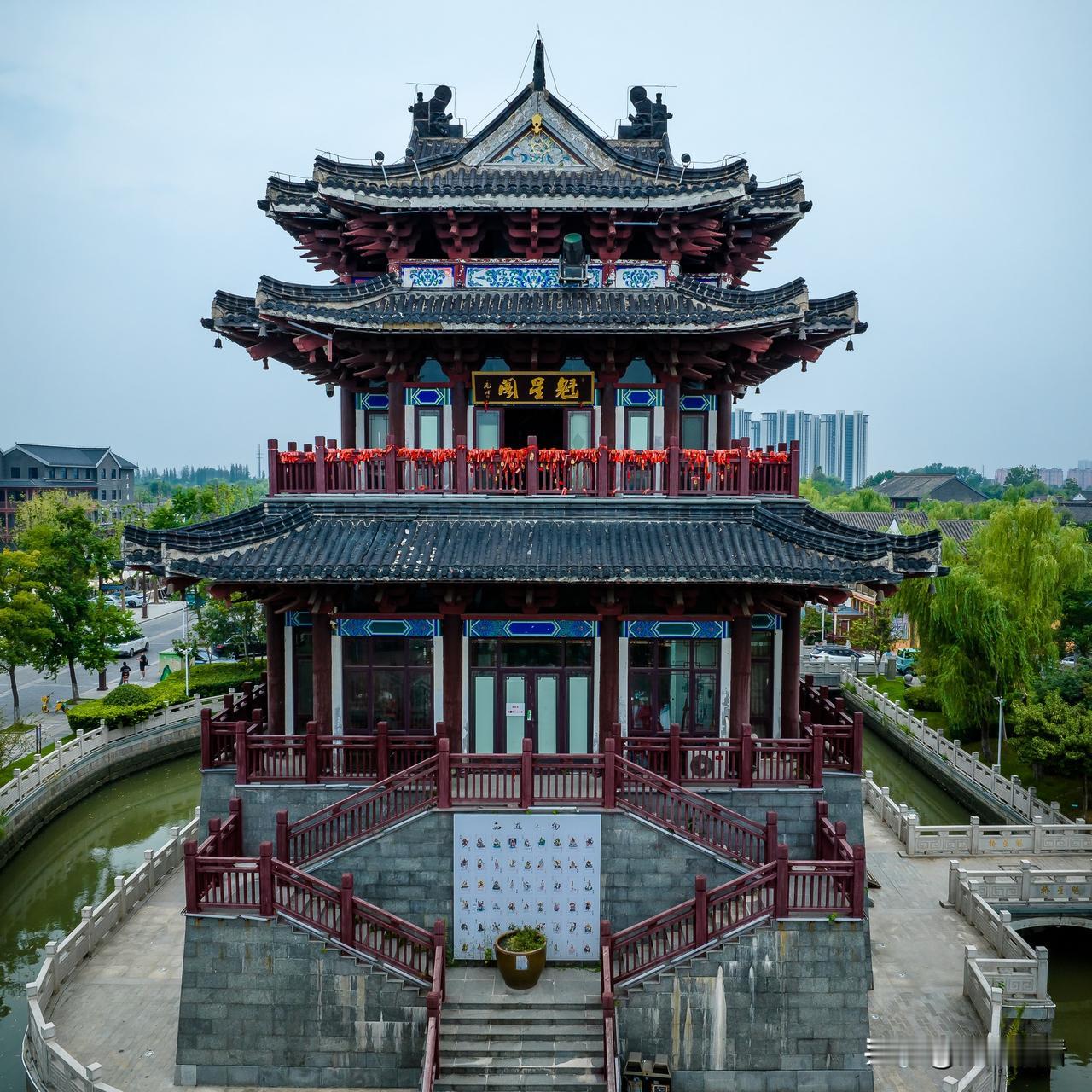 河下古镇的魁星阁是淮安河下古镇的标志性建筑,承载着古镇的历史记忆与文化寓意。 它始建于1892年至1900年间,最初功能为瞭望敌情、守护治安的更楼,后因河下古镇文风鼎盛,成为“进士之乡”,人们便在此供奉魁星雕像,使其转型为祈求文运的文化场所。 魁星阁为三层塔形建筑,风格古朴典雅,四面设门,门外有楼梯环绕。其独特之处在于临水而建,四周环水,被魁星、恒昌、文昌、状元四座桥梁环绕,构成一幅雅致独特的景观。 作为“进士之乡”的文化符号,魁星阁象征文章兴衰,是古代士子祈求科举中榜、文运亨通的精神寄托,也见证着河下古镇明清两代走出67名进士、123名举人的人文辉煌。