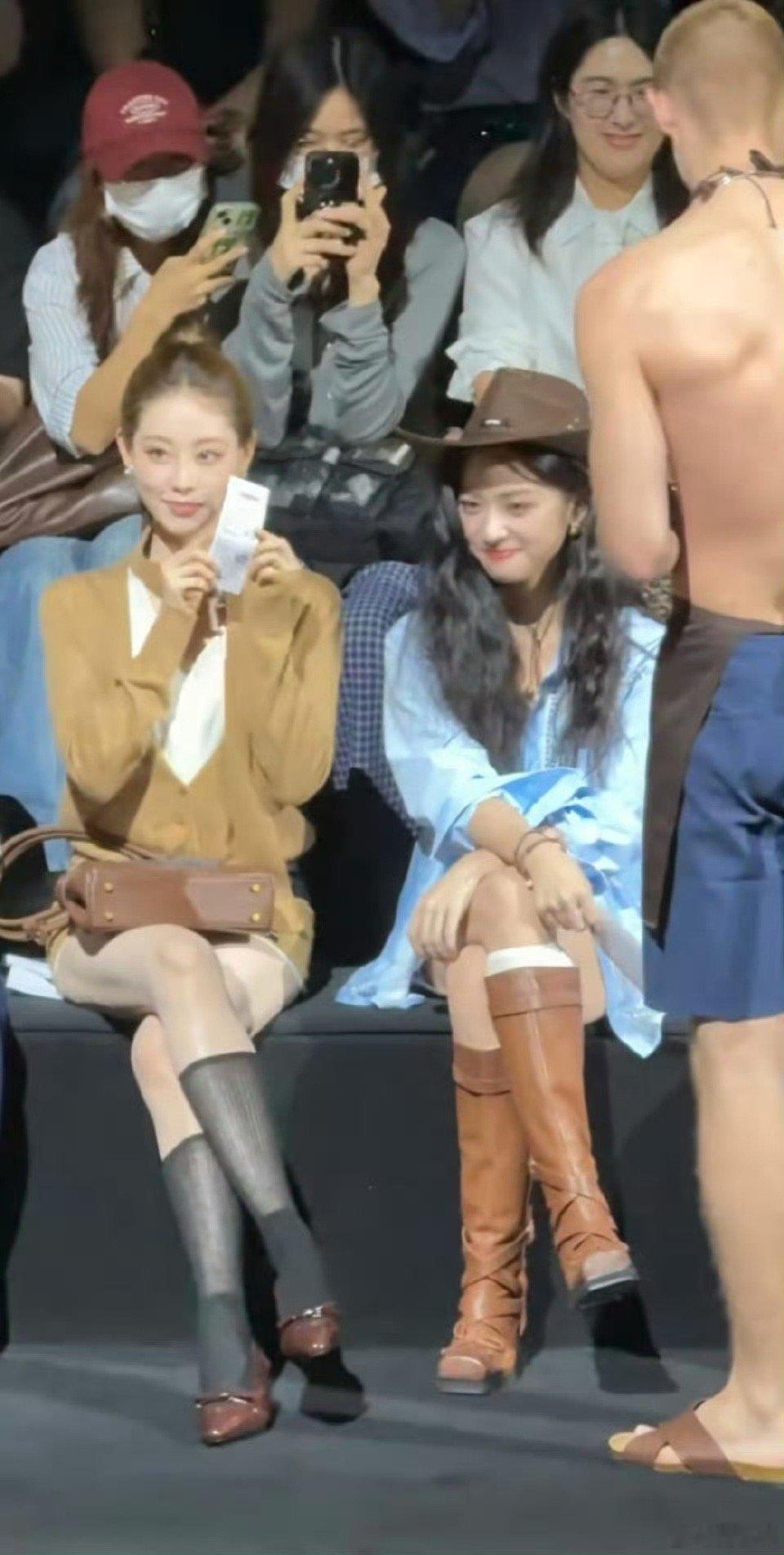 同场看秀的则用手机📱拍摄🎥,转移自己的注意力,形成社交悍佛式回避,与的少女本能害羞😳,形成鲜明对比。