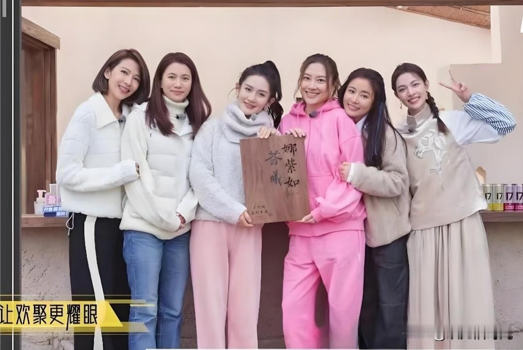 47岁的林心如说她眼花了,看手机要用大一些的字。 50岁蔡少芬拿出手机附和,说