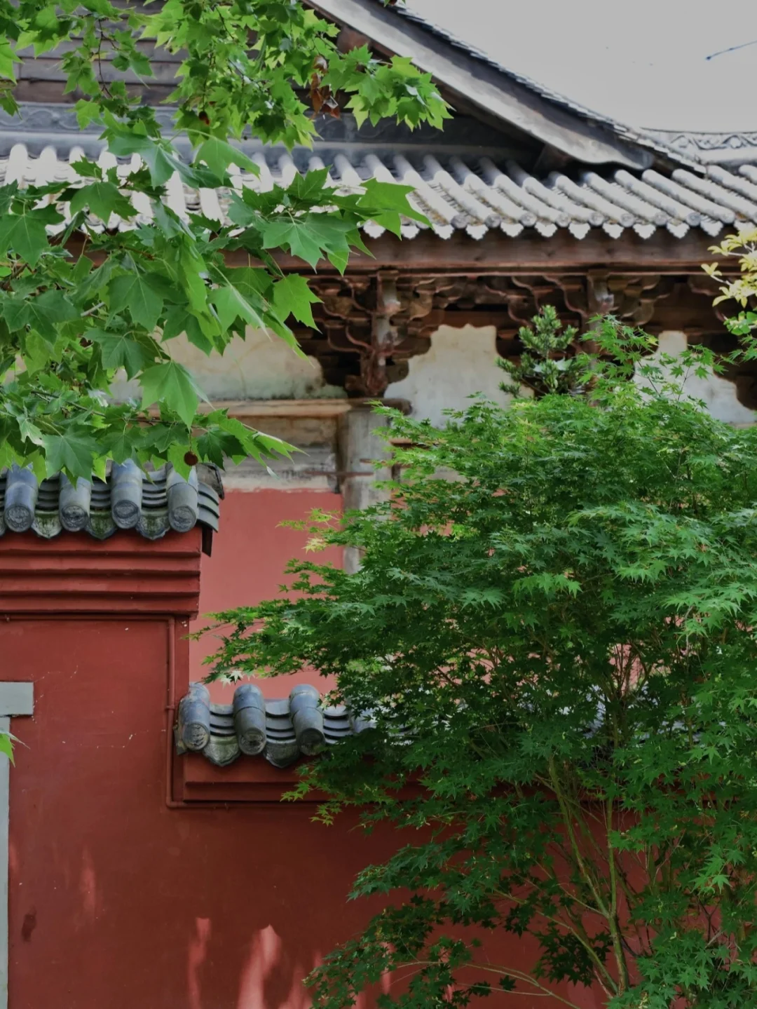 完好保存的明代古寺🏯,整个建筑有着鲜明的明朝建筑风格,整个大殿由16根金丝楠木大柱支撑,寺内的斗拱和天花板尤为精美,被列为全国重点文物保护单位