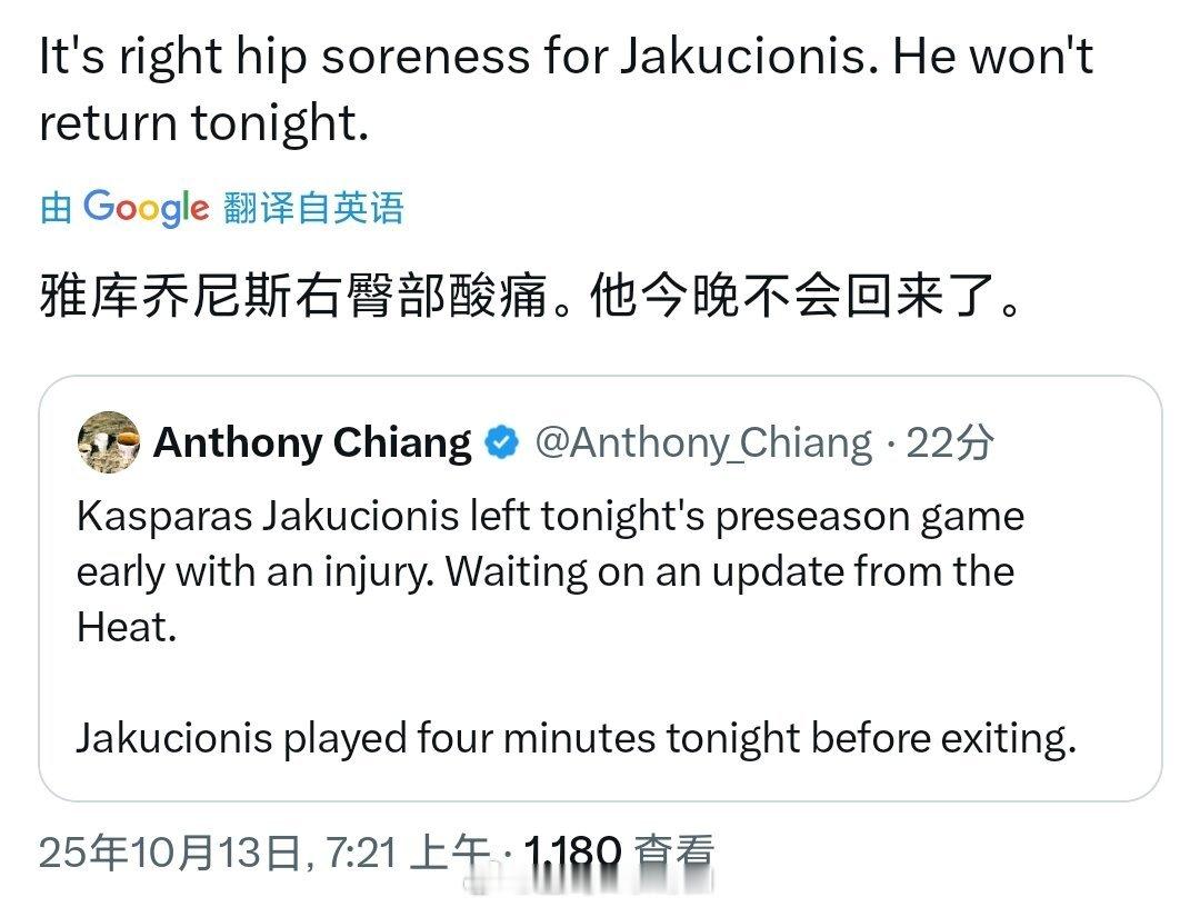 雅酷伤了,本场不会回归[裂开]新赛季开始伤病太多了nba季前赛