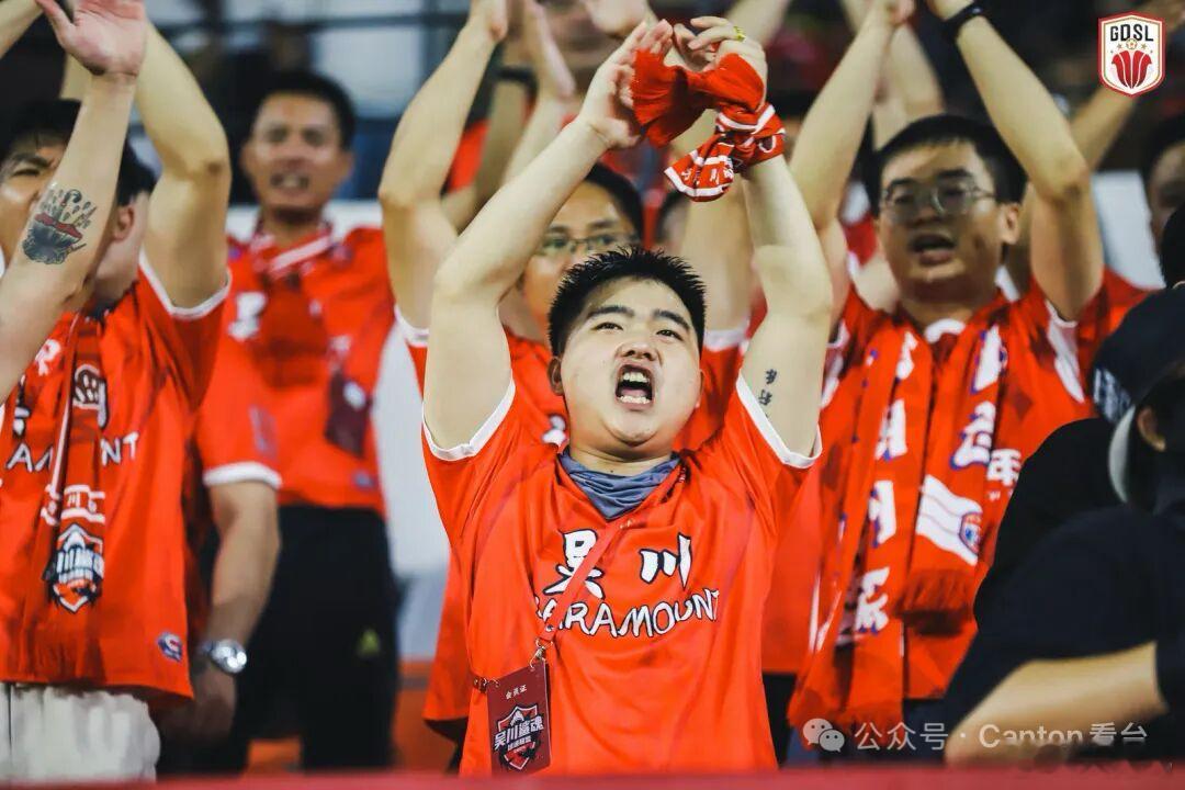 广东省足球超级联赛 吴川青年人的球迷助威氛围让人羡慕,昨晚这场省超比赛在肇庆赛区进行,吴川青年有近万名球迷来到肇庆新区体育中心,将这里彻底变成他们的主场,值得称赞!让我又想到了当年广州队力拔山河的助威声浪……