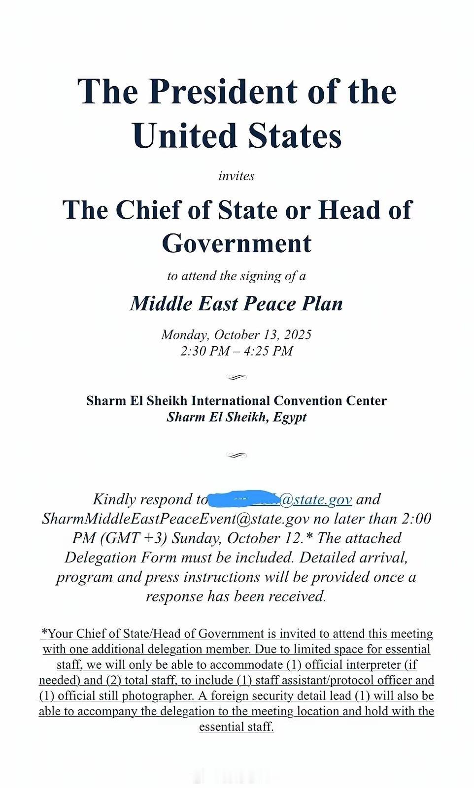 美国国务院向将于周一在沙姆沙伊赫举行的加沙领导人峰会发送了正式邀请。美国显著