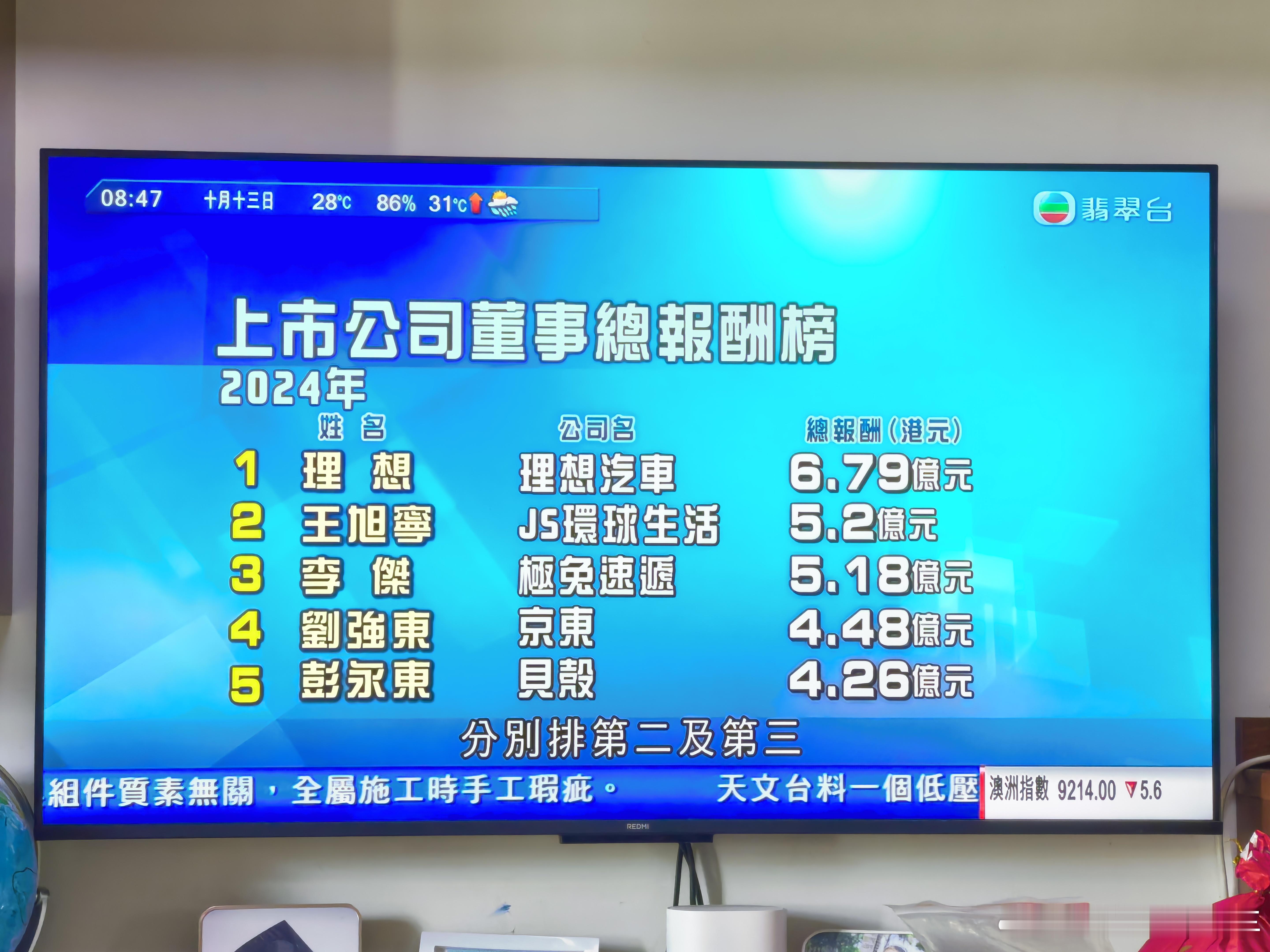 天啊,理想汽车董事李想2024年报酬达到6.79亿港元,比京东刘强东还要高,这太离谱了。李想2024年薪酬6.79亿港元