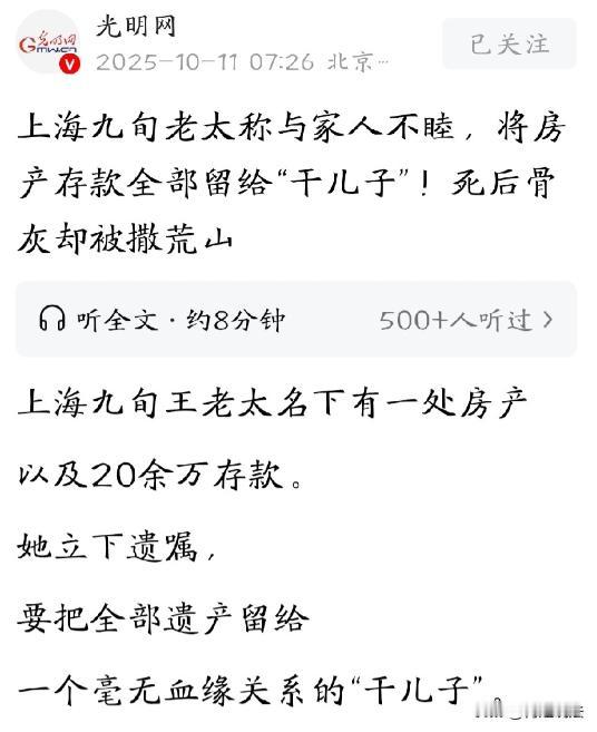老人有需要照顾的时候没人管 需要钱了就来抢 人心啊……