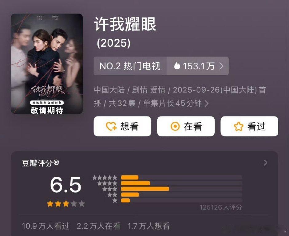《许我耀眼》db开分6.5,打分人数12.5w