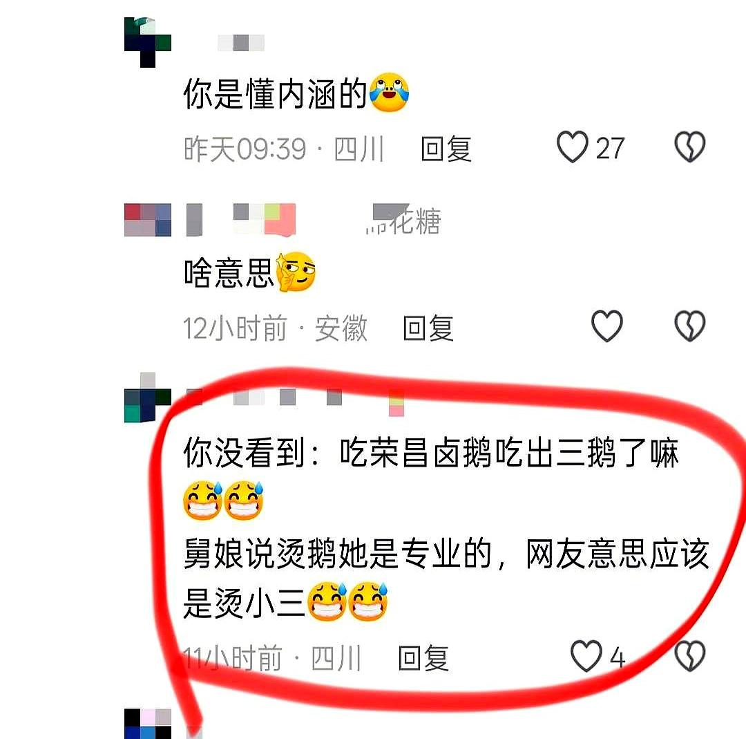 重庆万州李娟离婚仨月没掉泪,却被前夫新对象的抖音整破防——卤鹅店老板娘举着油亮亮的鹅腿喂老公,配文“往后余生有鹅有你”,评论区直接@她。 当晚,幺舅在家族群甩话:“明儿来吃烫鹅,我掌勺——三烫三晾,火候到了骨头都酥。” 没人提离婚的事。 李娟搬回娘家那天,爹妈灶上炖着腊蹄,案板摆着折耳根,饭桌多摆副碗筷,“人到齐了吃饭”。 老街坊都知道,李家烫鹅是万州老城传了三代的手艺,土鹅现杀,开水烫毛要“快准稳”,三烫三晾逼出油脂,比卤鹅更显功夫,“跟他们家人一样实在”。 如今李娟开了家小超市,周末娘家人准来“进货”。 幺舅每次拎着烫鹅进门:“多吃点,有力气挣钱。”饭桌上的热气裹着鹅香,网友刷到都说:“这才叫撑腰!不撕不闹,用自家手艺告诉闺女:你有家,有拿手菜,啥都不怕。”