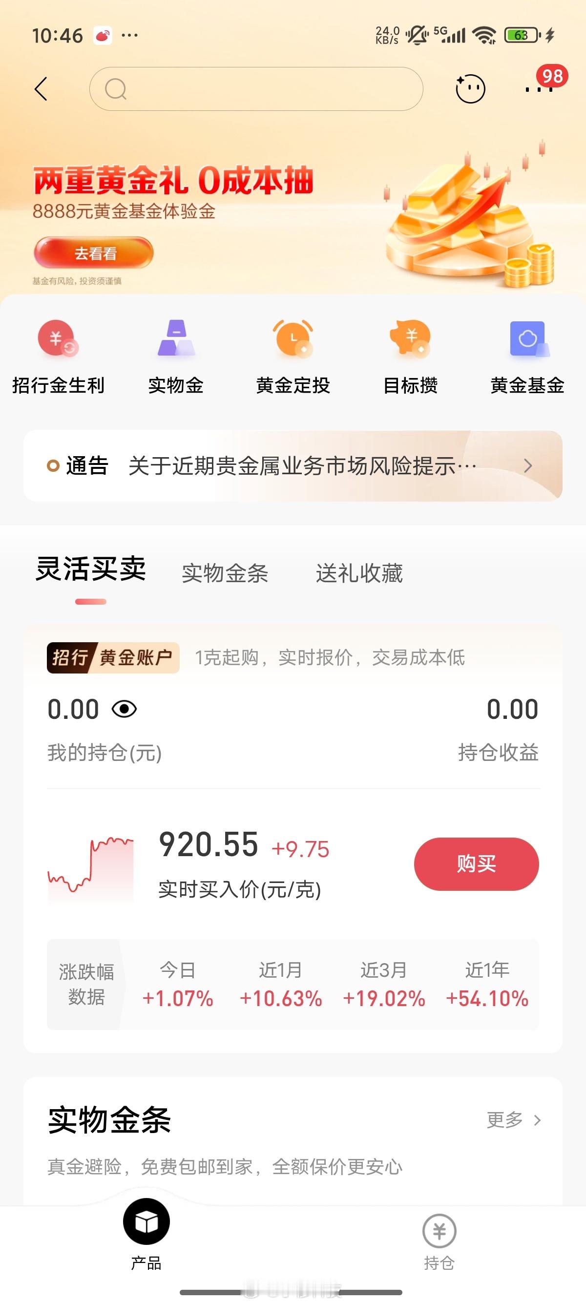 黄金好家伙,黄金已经涨到了920了,国庆之前还是850左右,一个月涨了100了,亏大了[捂嘴哭]