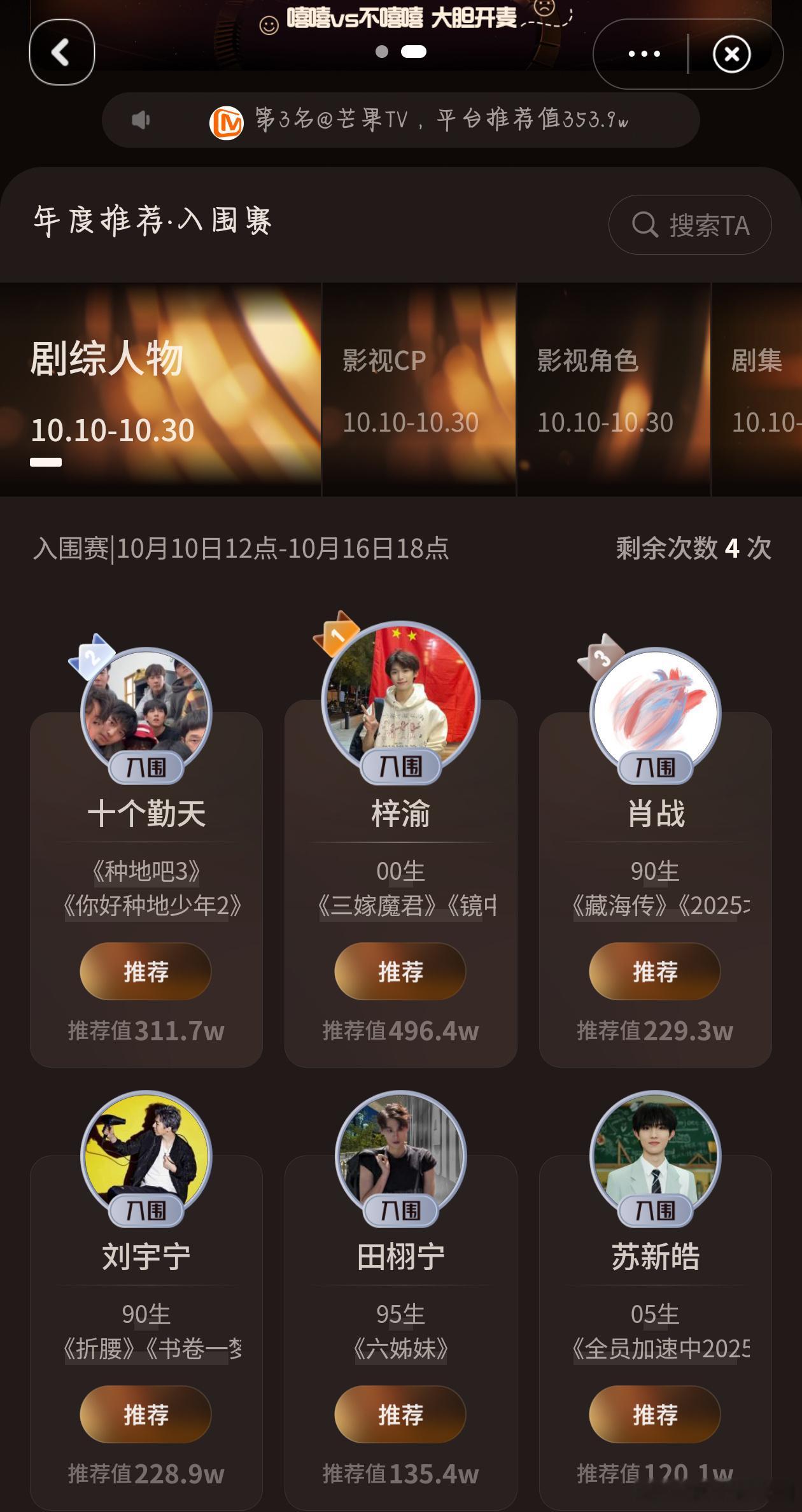 内娱大型排位赛现场🈶梓渝剧综人物推荐值第一!!剧综大咖开放麦