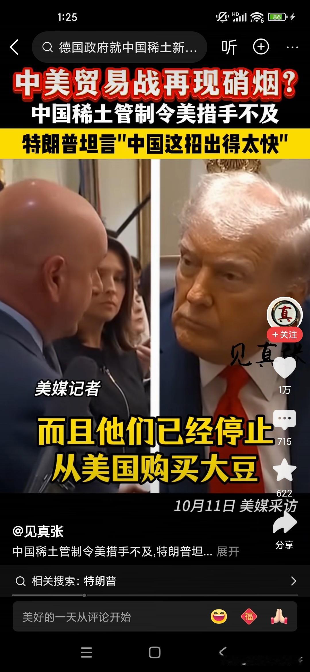 真的没有想到这一次中国稀土反制这么强烈,让特朗普都没有想到,因为特朗普一直以来都是喜欢拿起关税的棒子对各国进行收割,之前中国在新闻联播上都说我们不可能跪的,如果合作我们开门欢迎,如果是需要打,我们奉陪到底。 再说中国人就算是在1950年最穷的时候,我们也没有跪过,更不用说现在了,我们的已经成为世界上第一工业强国,我们有很多可以拿的出手的杀手锏,特朗普总是一副高高在上的样子,现在的话,我们真的是把他底裤都扒了,一点情面都不给他留,过去的话,还会我觉得特朗普因为是川建国,对我们中国做了不少好事儿,但是现在的话,无论是稀土管制还是大豆转而进口巴西的,南美的,而不是进口美国的,而这些很多种大豆的是红脖子是特朗普的选票的票仓,如果他得罪了这些红脖子的话,将来可能对于他的总统选举乃至连任都很难说!