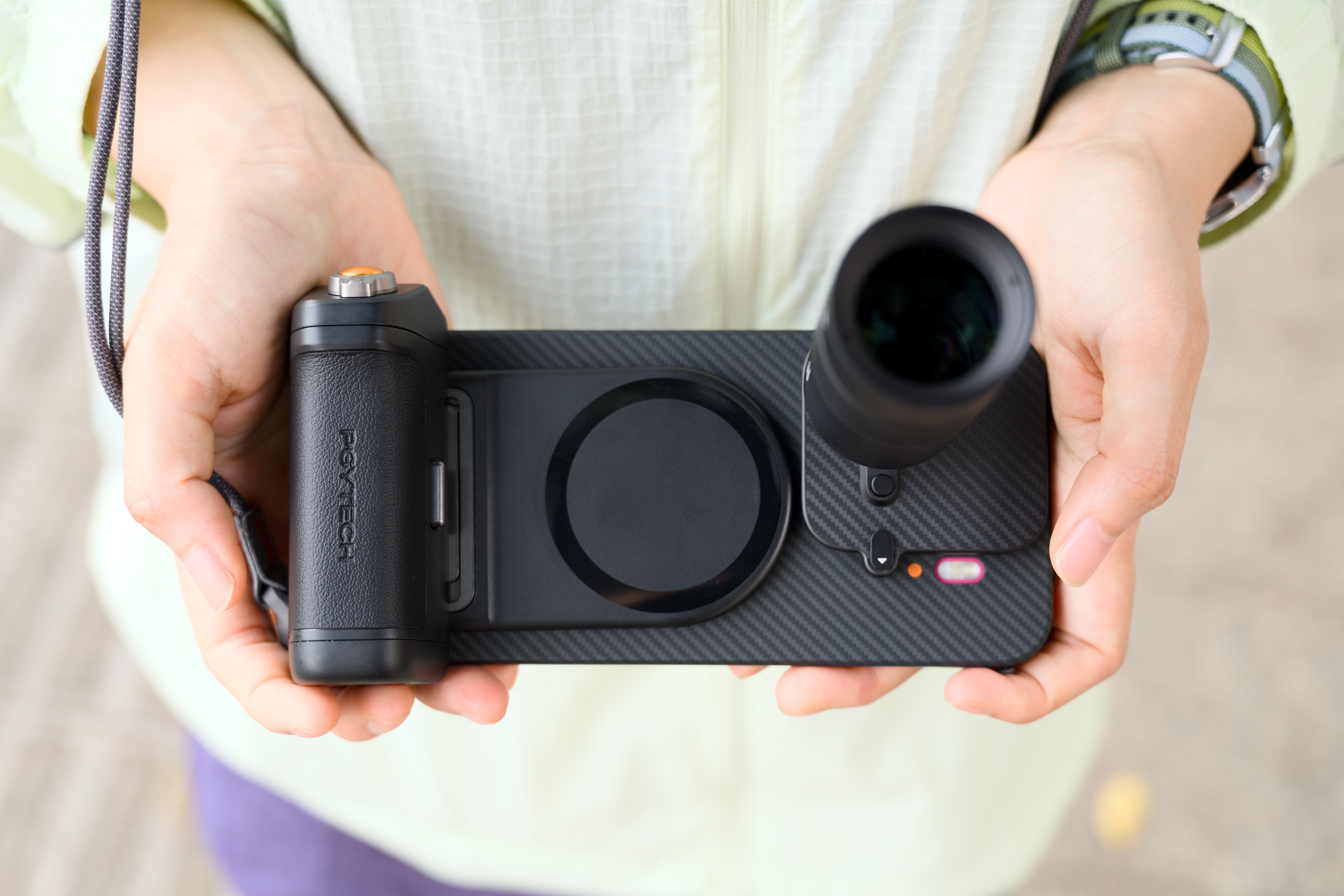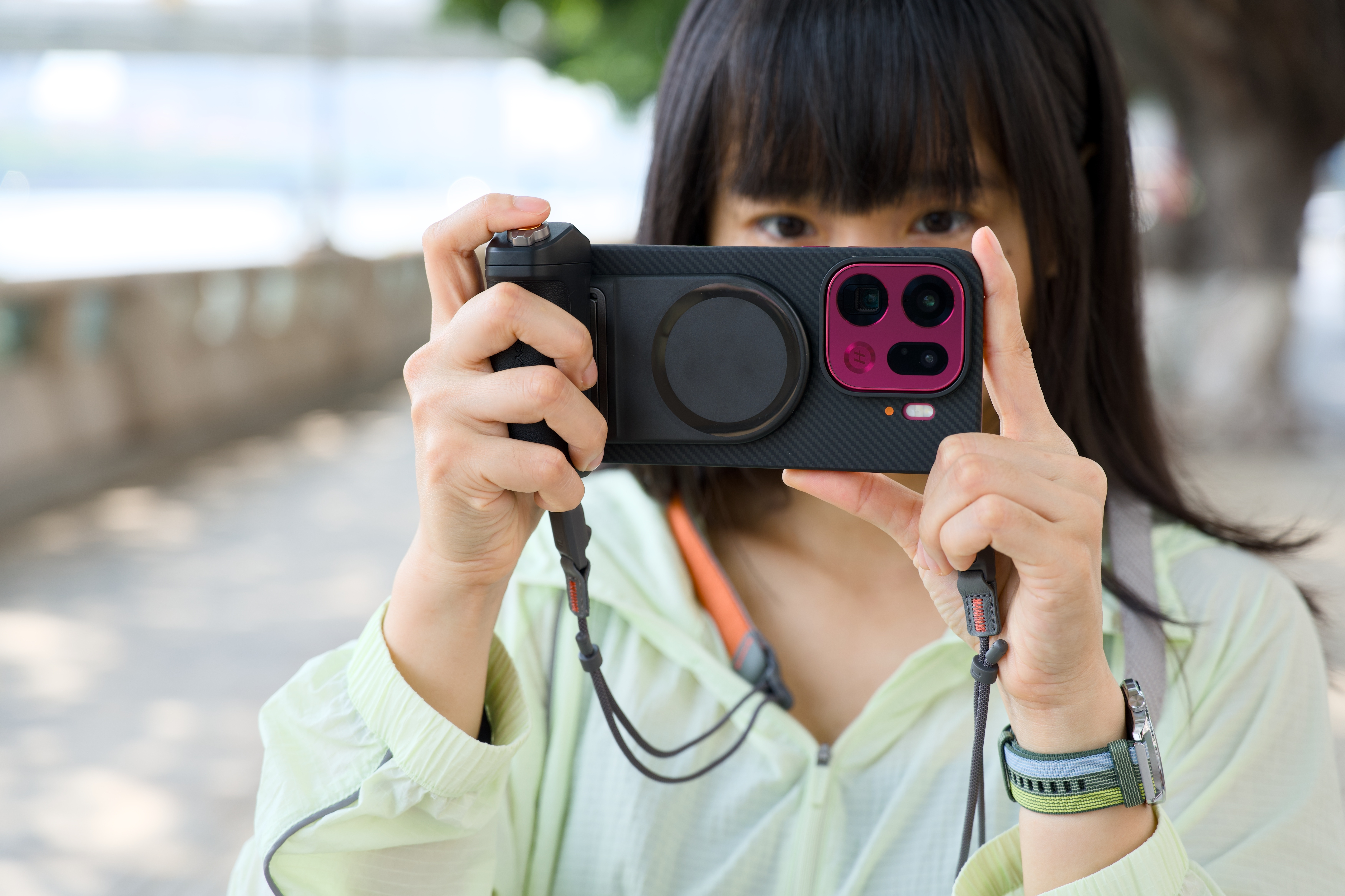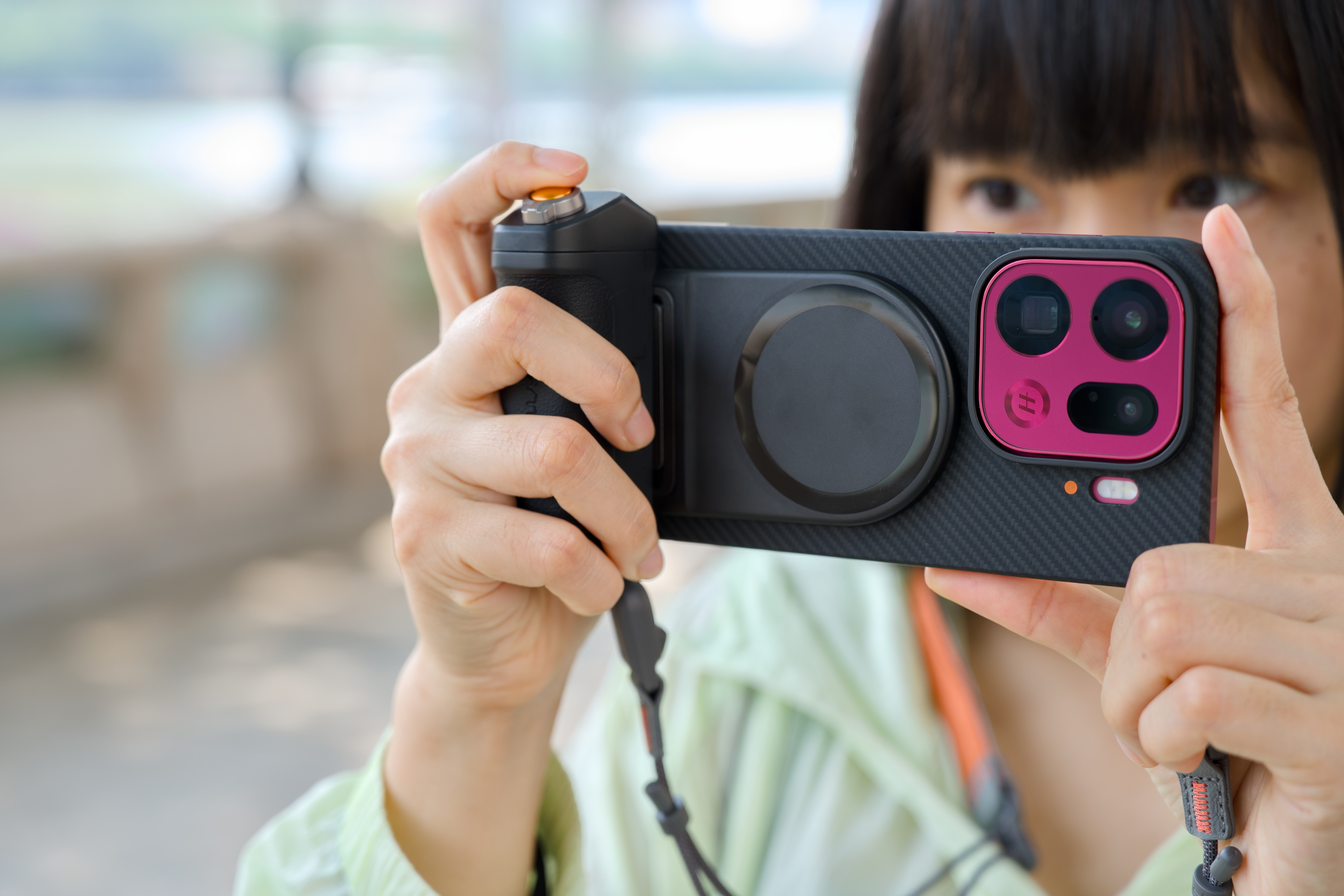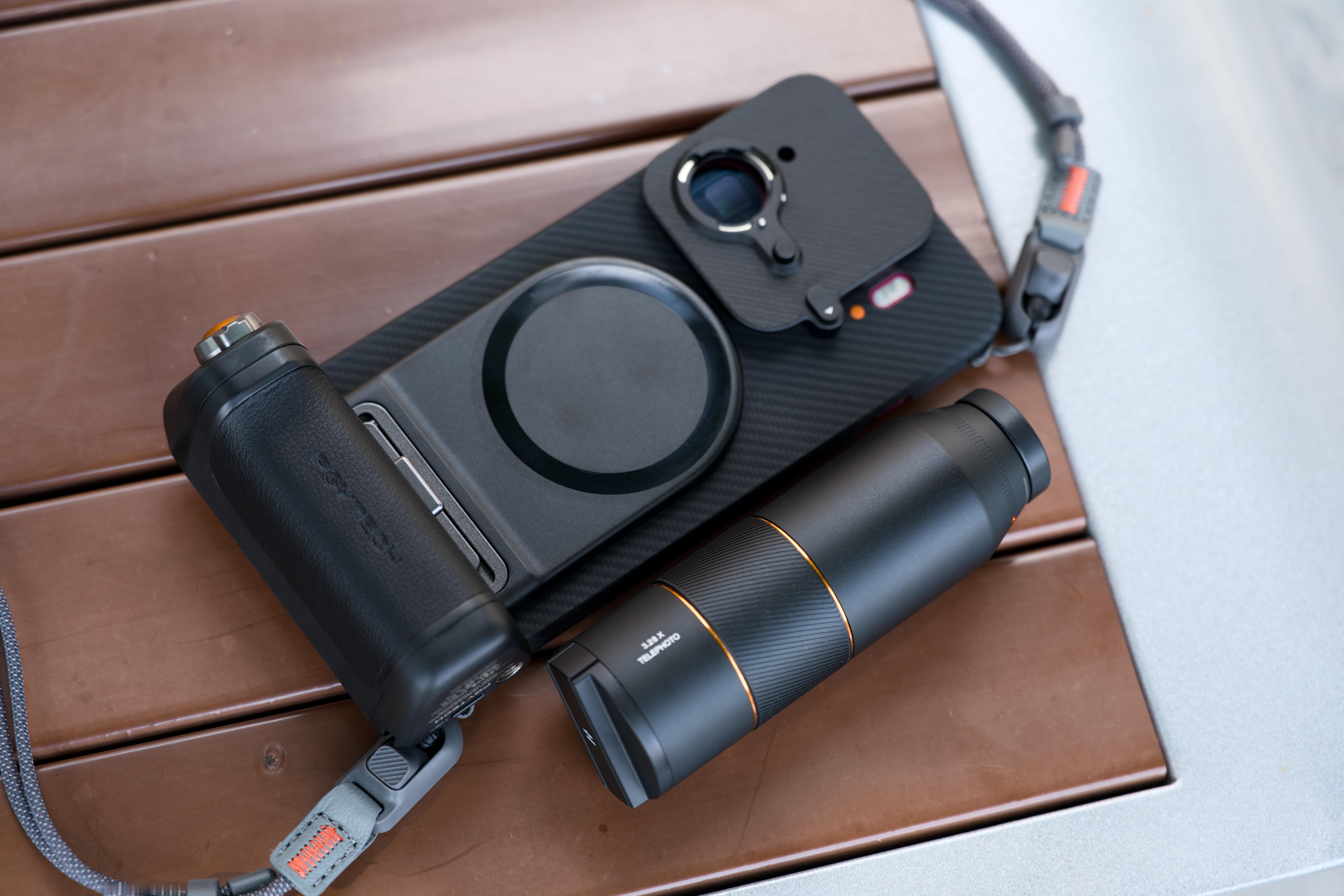 OPPO Find X9 Pro哈苏套装,轻便优雅,装卸方便,手柄的橙色快门键和增距镜的橙色圆环绝对是点睛之笔。