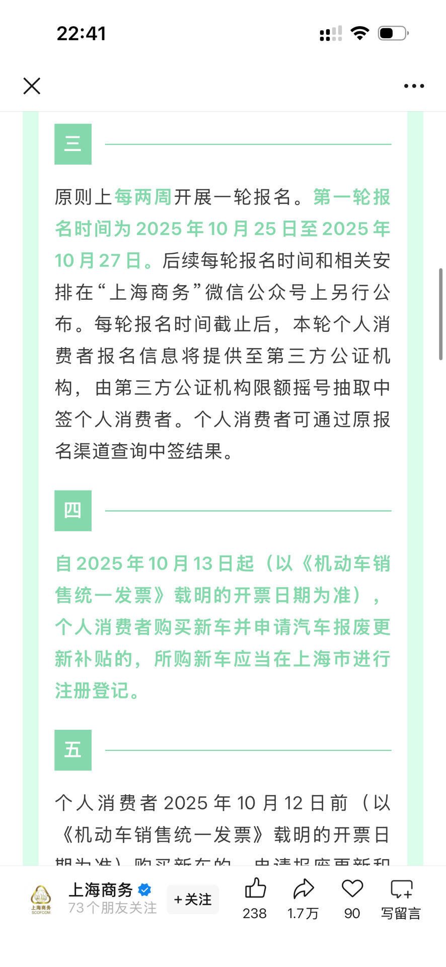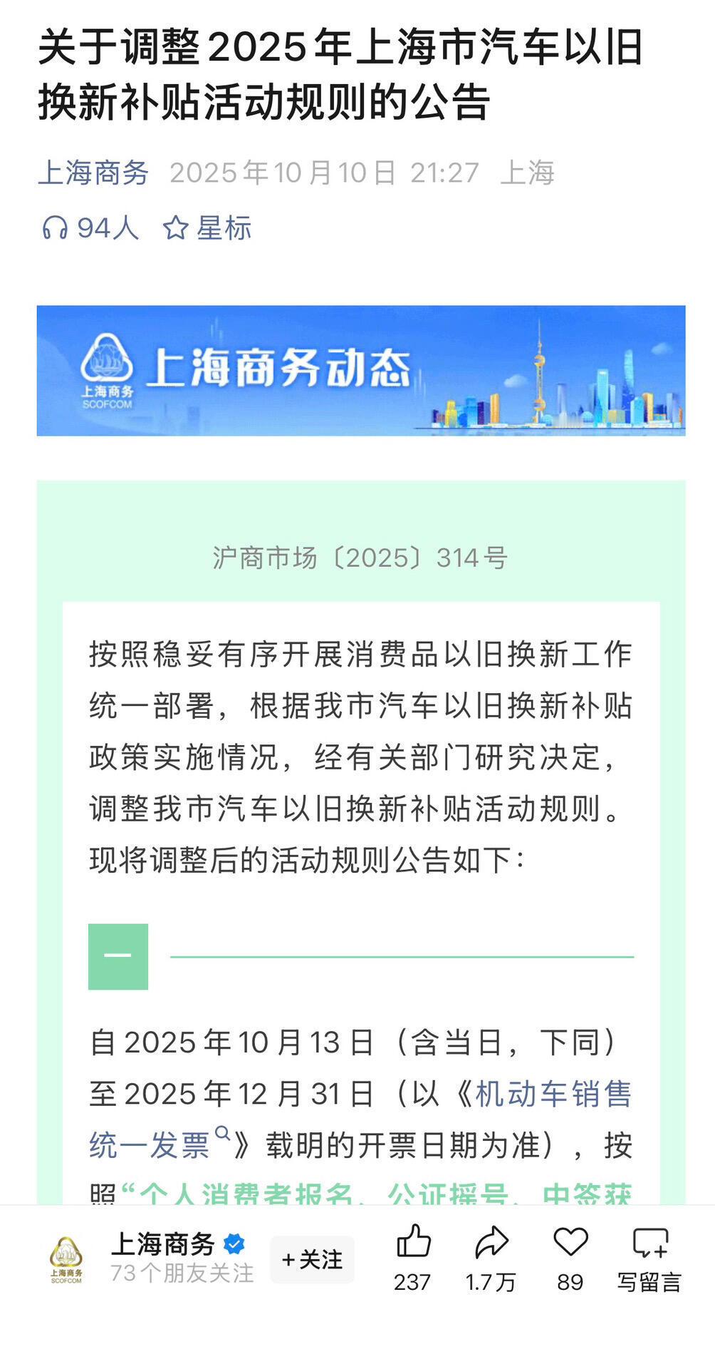 上海的置换补贴结束了,又好像没结束。现在不是有车置换就给,而是从10月13日至12月31日期间开票的新车,需通过“报名→公证摇号→中签”流程获取补贴资格。 上海汽车以旧换新要摇号了