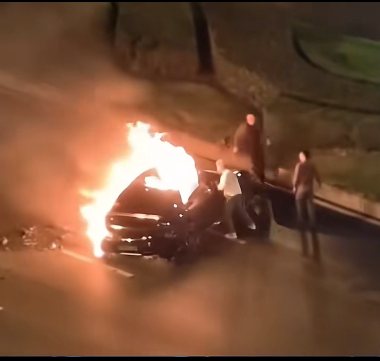 第二、车辆发生碰撞后有翻滚导致变形,这应该是打不开车门和发生燃烧的原因