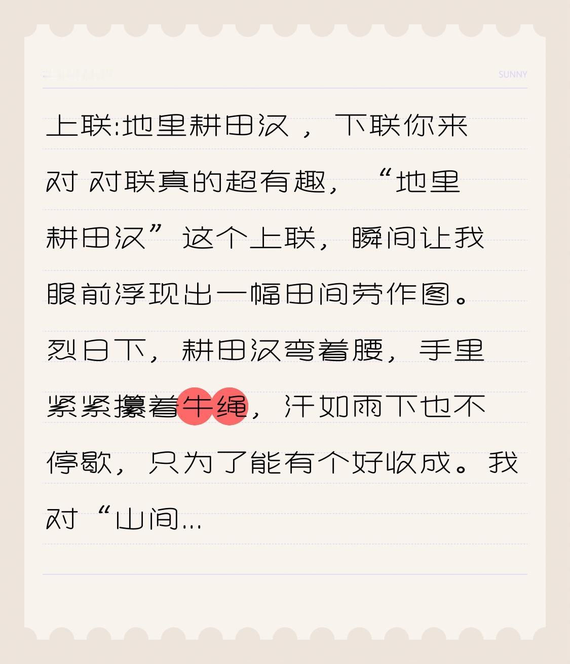 上联:地里耕田汉 ,下联你来对 对联真的超有趣,“地里耕田汉”这个上联,瞬间让我眼前浮现出一幅田间劳作图。烈日下,耕田汉弯着腰,手里紧紧攥着牛绳,汗如雨下也不停歇,只为了能有个好收成。 我对“山间采药人”。想象一下,采药人在山林中穿梭,拨开草丛,仔细辨认各种草药。他们翻山越岭,不辞辛苦,为的是采集到珍贵的药材。 这耕田汉和采药人,虽然职业不同,但都在为生活拼搏。对联不一定得对仗特别工整,有这份生活的烟火气就很棒,仿佛把两种生活场景融合在一起,成了一幅生动的画卷。