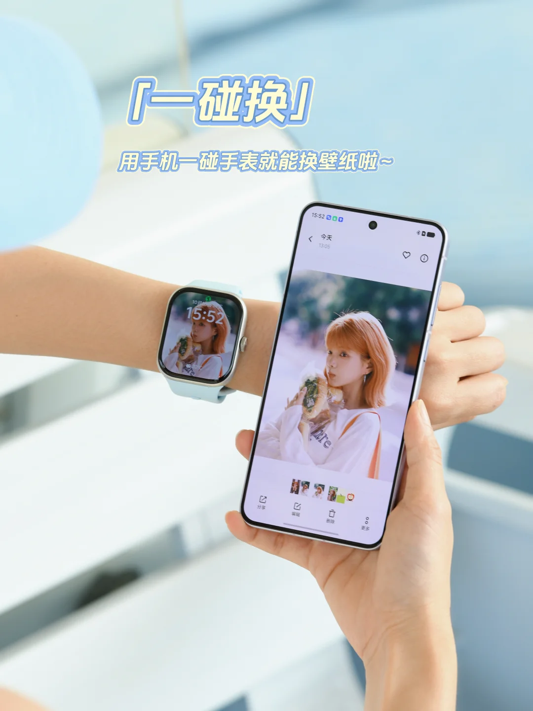 在手机相册上打开喜欢的照片,手表轻触手机NFC 区域,瞬间就将这张照片设置为我的专属表盘啦!这个功能也太炫酷了,忍不住要当面向朋友炫耀一下哈哈哈