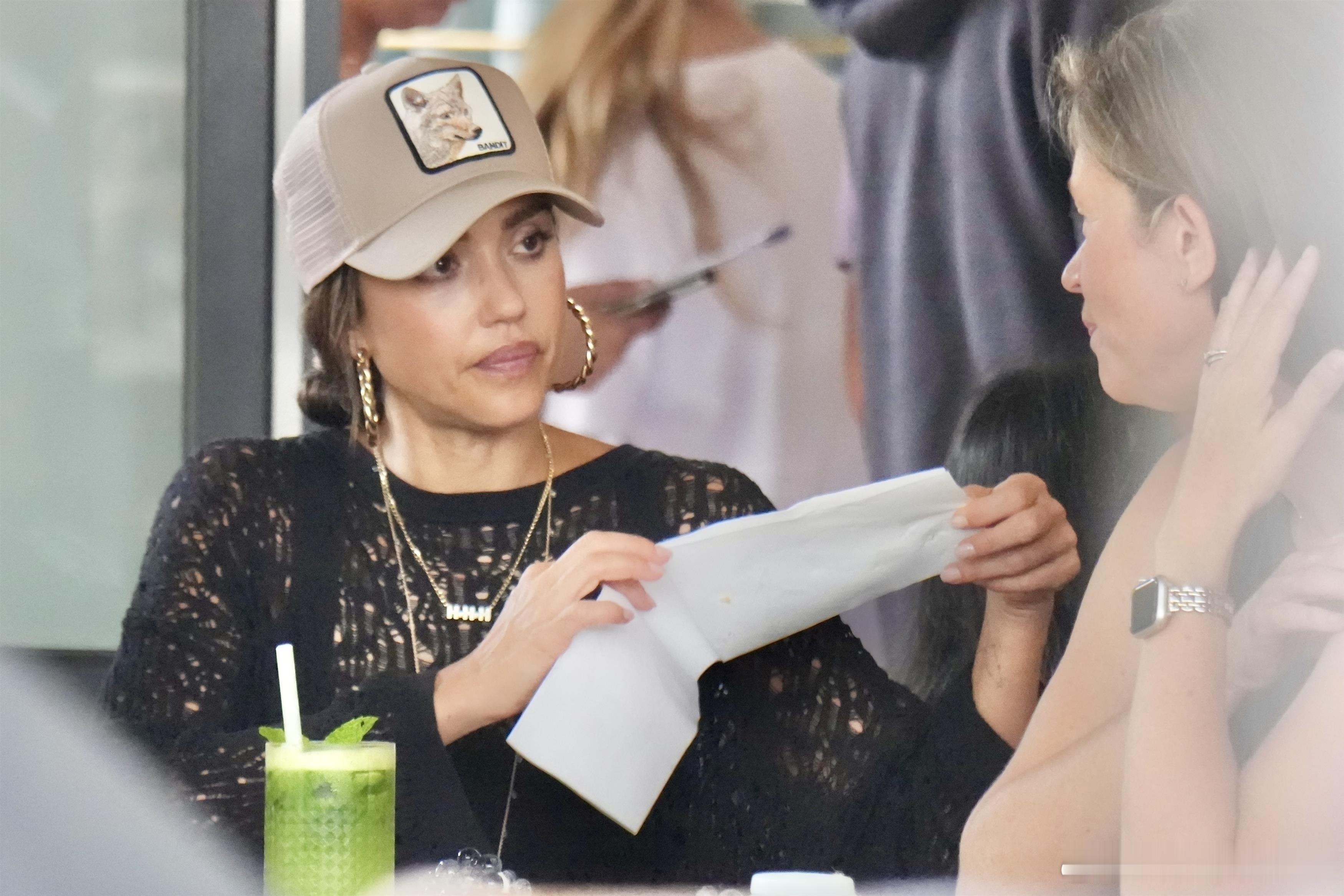 jessica alba杰西卡阿尔芭在澳大利亚黄金海岸外出,芭姐骑自行车出门溜达,之后和团队到一饮品店就餐