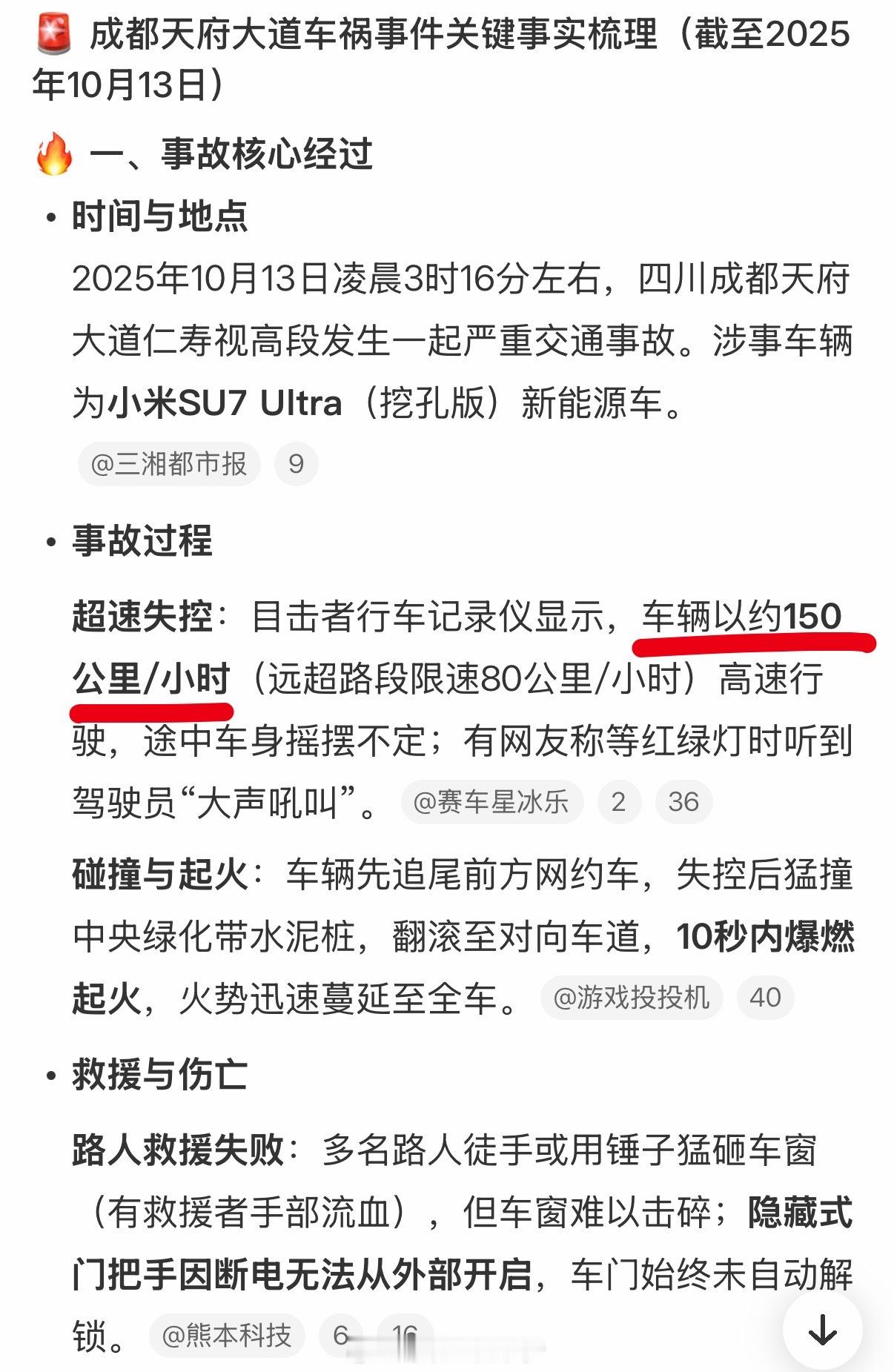 网传成都一小米SU7ultra事故后起火2025年10月13日凌晨3时16分