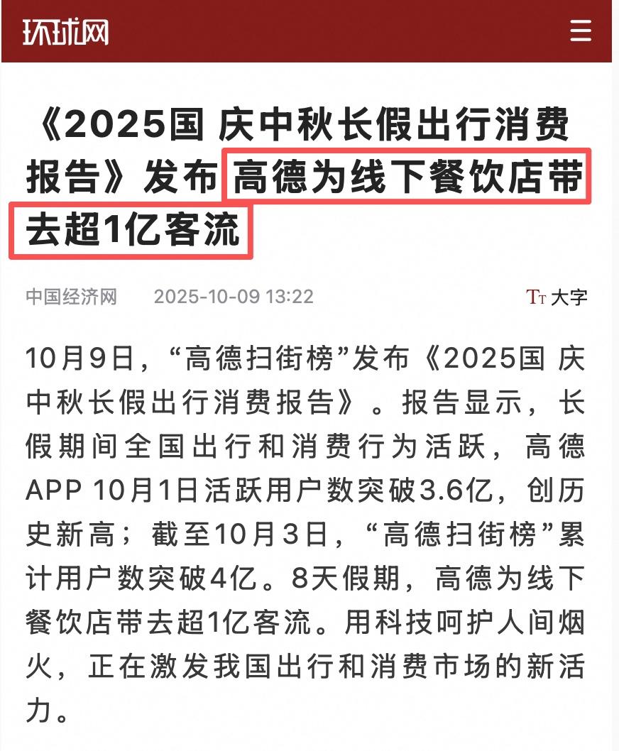国庆结束了,8天时间,高德带去1亿客流,央媒特意点赞!事关每个开饭店的人! 国庆假期刚刚落幕,但那一幕幕热闹的场景,却在每个餐饮人心中久久难以平复。8天时间,高德导航带来了超过1亿的客流,这不仅仅是一串数字,更是一场属于餐饮行业的盛大“春天”。央媒的点赞,更像是一声响亮的号角,唤醒了无数餐饮从业者的希望与信心。 在这个假期里,无数餐厅迎来了久违的人潮,门口排起了长队,笑声与欢呼声交织在空气中。这一切的背后,是无数餐饮人默默的付出与坚持。或许有人会说:“只是短暂的繁荣,假期结束后又会归于平静。”但我想说,这正是检验行业韧性和创新能力的最佳时刻。 每一个餐厅老板、服务员、厨师,都是这场“客流奇迹”的幕后英雄。面对激增的客流,他们没有慌乱,没有退缩,而是用心守护每一位顾客的笑脸,用创新的菜品和优质的服务,让每一位顾客都能带着满足和感动离开。这种坚持和努力,正是行业最宝贵的财富。 更重要的是,这次高德带来的1亿客流,揭示了数字化和科技赋能的巨大潜力。借助智能导航、精准推送,餐饮行业可以更好地洞察市场需求,优化运营策略,真正实现从“被动等待”到“主动引流”的转变。这不仅仅是技术的革新,更是行业的未来方向。 央媒的点赞,是对餐饮行业的肯定,更是对所有坚守岗位、不断创新的从业者的鼓励。我们看到的不仅是数字,更是一份责任:让每一位顾客都能在我们的餐桌上找到家的温暖。在未来的日子里,只要我们继续坚持初心,勇于创新,就一定能迎来更加辉煌的明天。 这场假期的“客流奇迹”,激励着每一个餐饮人,也提醒着我们:只要心怀热爱,敢于突破,就没有什么是不可能的。让我们携手并肩,用心守护每一份美味与温暖,共同迎接更加灿烂的未来!十一出行人次 国庆餐饮行情
