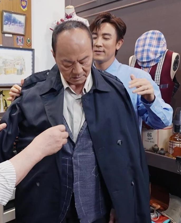 为了令这件事对父亲更具意义,阿Shaun所造西装,除了与狄龙在经典电影《英雄本色》中的西装款式极为相近外,阿Shaun还专诚于父亲试身期间,为他披上预先准备好的“豪哥褛”,为父亲还原经典电影造型。