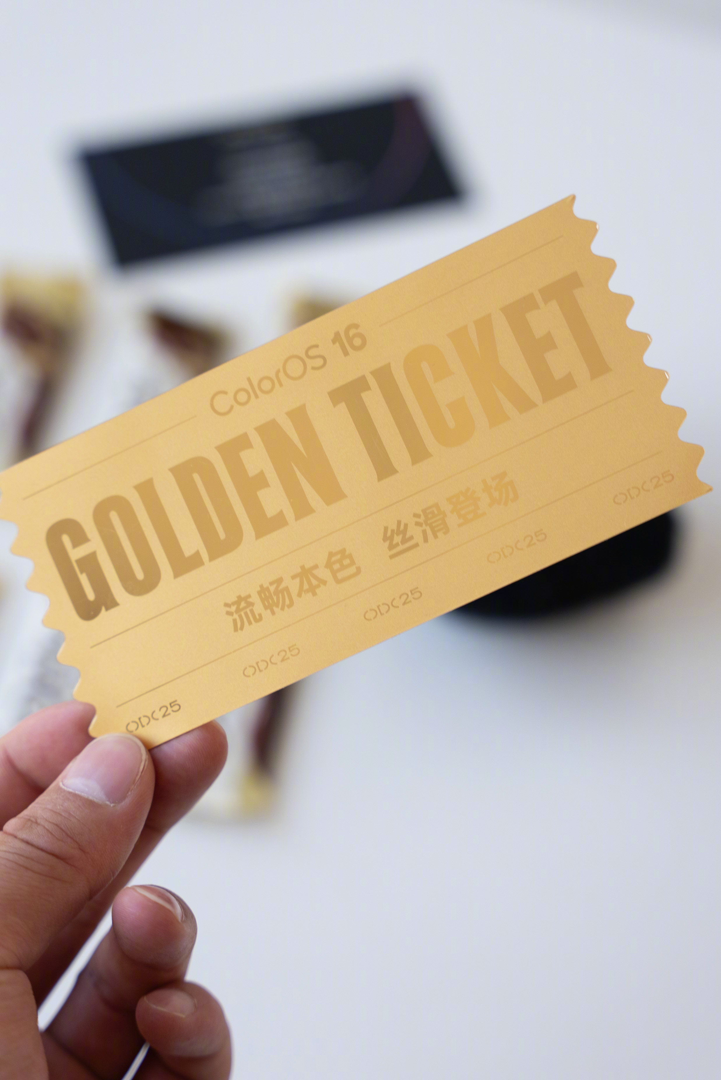 巧克力我吃了~评论里送出这张0.1g纯金的《查理和巧克力工厂》同款的纪念票加上 OPPO AI 的全新形象「小布点」~抽一位对 ColorOS 感情深厚的友友!这次的潮汐引擎,还有 AI 功能很值得期待,15 号发布会一起蹲一下子 ColorOS16OPPO Find X9