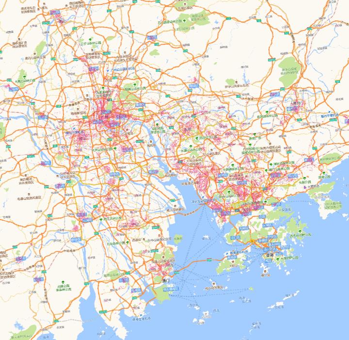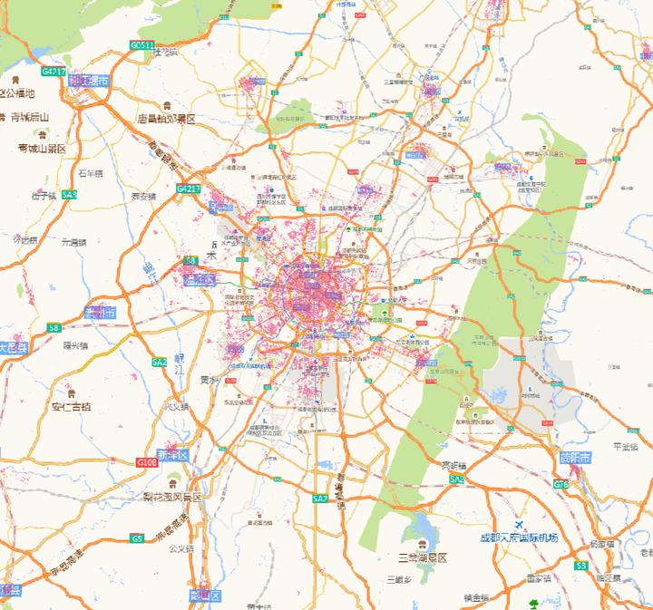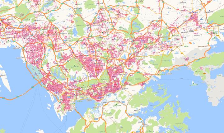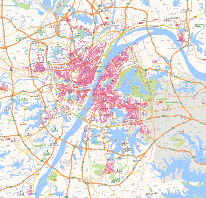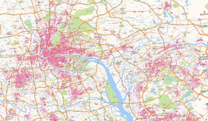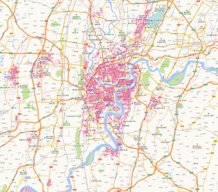 如何看待新建地铁附近要求人口密度一般要达到1.5万人/平方公里? 以地铁站为核心,如果东西南北1公里达到1.5万人/平方公里,被认为是中密度,高于2万人/平方公里被视为高密度。也就是2*2公里范围内要有6万人甚至8万人。 看到有人对人口密度进行了以行政区为单位的统计。实际上,目前有很多方法能够给出人口在城市内部的具体空间分布。尽管仍然是以统计数据为基础,准确度也有限,但是至少可以很直观地看出哪里的人口密度高于1.5万人/平方千米。 下面放一些中国内地主要城市的人口密度图。数据来源[1],该数据基于第七次人口普查。底图来自高德。红色区域为人口密度高于1.5万人/平方千米的区域。都是草图,没有控制比例尺不变。 深圳广州珠三角重庆(中心城区)成都上海、苏州、无锡杭州南京北京西安武汉郑州