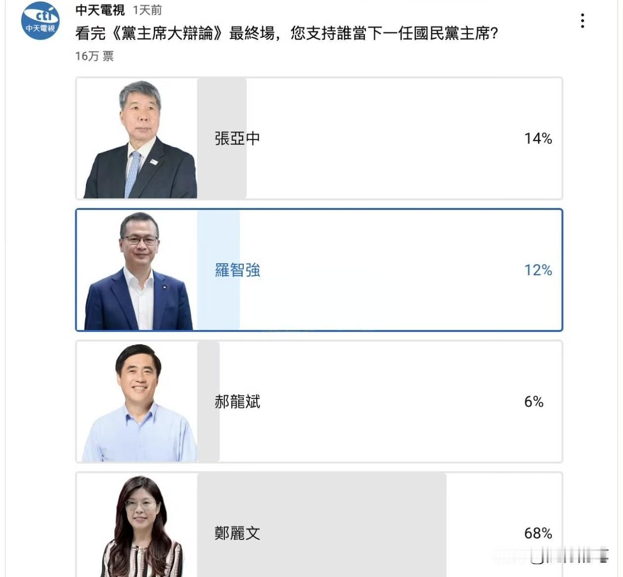 郑丽文网络民调支持率遥遥领先,而郝龙斌获得内部国民党县市长表态支持人数越来越多。 经过多次的辩论,岛内媒体做的民调显示几乎都是郑丽文支持率断层领先,但是这种民调只是一种表面上的参考,至于有多少实质上的支持有待观察,但是郝龙斌至今已经有多位“选票大户”县市长公开表态支持,包括侯友宜、钟东锦、杨文科和张善政、许淑华、傅琨萁、徐榛蔚等,还有赵少康这个“战斗蓝”团体。要知道这不仅仅是他们个人的支持,他们各自背后群体的支持者数量也是不容小觑的,所以郝龙斌获得的支持是实实在在的选票。 郑丽文网络民调是表面上光鲜亮丽,是否意味着实际支持率不得而知,而郝龙斌争取到的确实是板上钉钉的选票,所以别以为郑丽文就十拿九稳了,郝龙斌背后的支持群体确实不少。不到最后一刻真的不好说谁会一定当选。