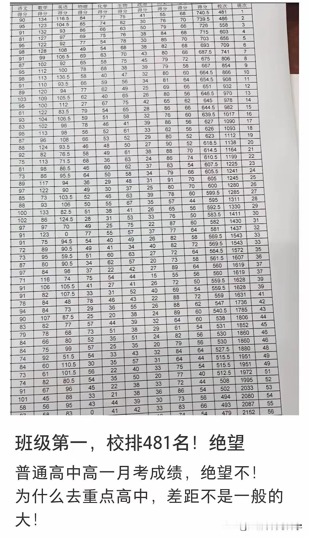 身在高中普通班的最大弊端就是看不到希望,头部同学即使在努力也是年级几百名, 这对