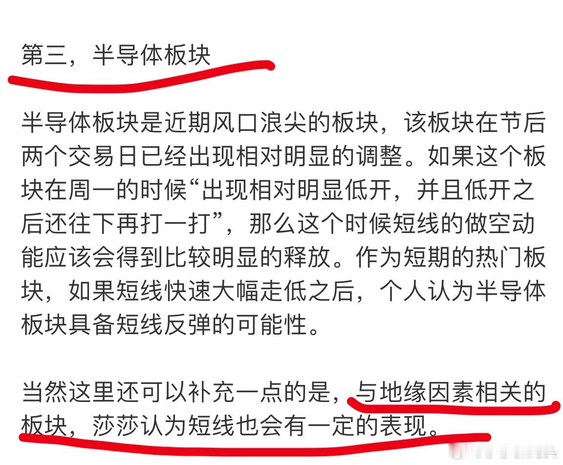 最后莎莎凡尔赛一下大家请看图二,今天市场涨幅居前的板块反弹比较厉害的板块就有莎莎在上周六周末策略视频和文章当中和大家讲到的三大方向之一半导体。